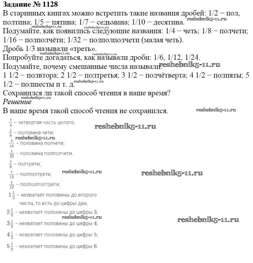 Готовая домашняя работа с ответами по Математике за 5 класс Виленкин, Жохов, Чесноков, Шварцбурд Учебник Мнемозина 2013 ФГОС - Глава 2. Дробные числа (упражнения с 850 по 1849) 1128