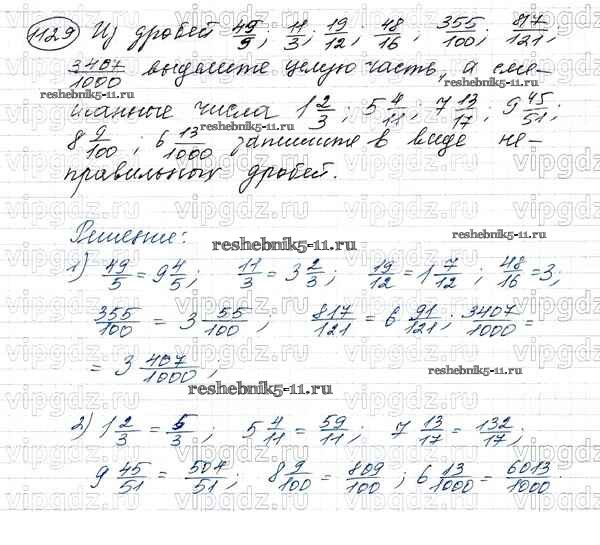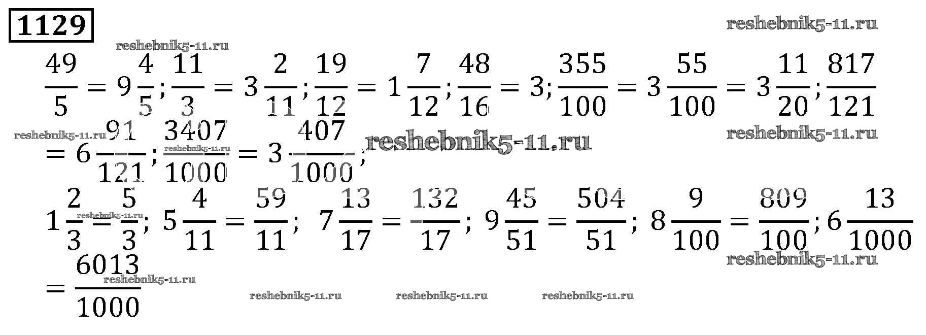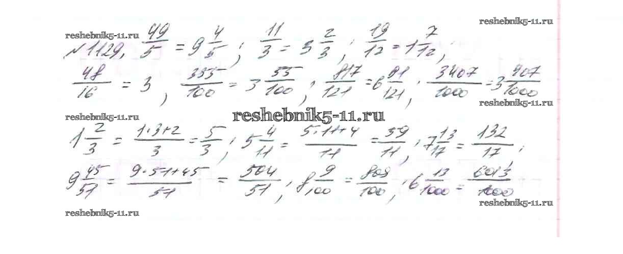 Готовая домашняя работа с ответами по Математике за 5 класс Виленкин, Жохов, Чесноков, Шварцбурд Учебник Мнемозина 2013 ФГОС - Глава 2. Дробные числа (упражнения с 850 по 1849) 1129