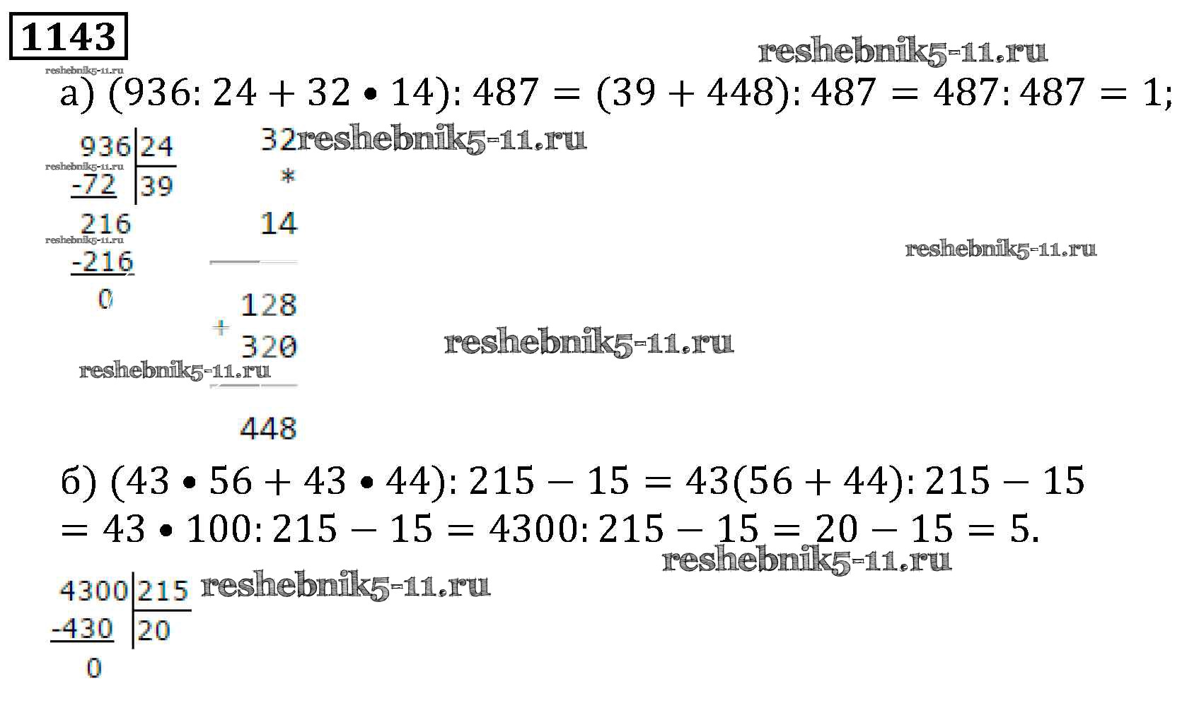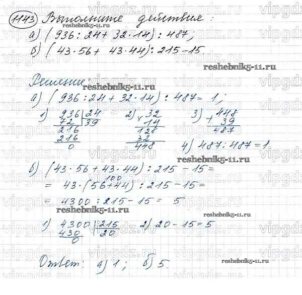 Готовая домашняя работа с ответами по Математике за 5 класс Виленкин, Жохов, Чесноков, Шварцбурд Учебник Мнемозина 2013 ФГОС - Глава 2. Дробные числа (упражнения с 850 по 1849) 1143