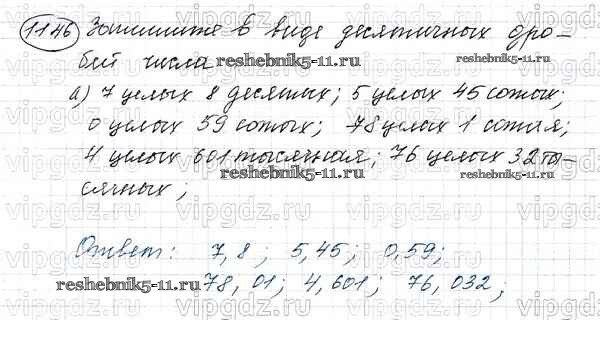 Готовая домашняя работа с ответами по Математике за 5 класс Виленкин, Жохов, Чесноков, Шварцбурд Учебник Мнемозина 2013 ФГОС - Глава 2. Дробные числа (упражнения с 850 по 1849) 1146