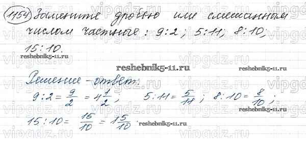Готовая домашняя работа с ответами по Математике за 5 класс Виленкин, Жохов, Чесноков, Шварцбурд Учебник Мнемозина 2013 ФГОС - Глава 2. Дробные числа (упражнения с 850 по 1849) 1154