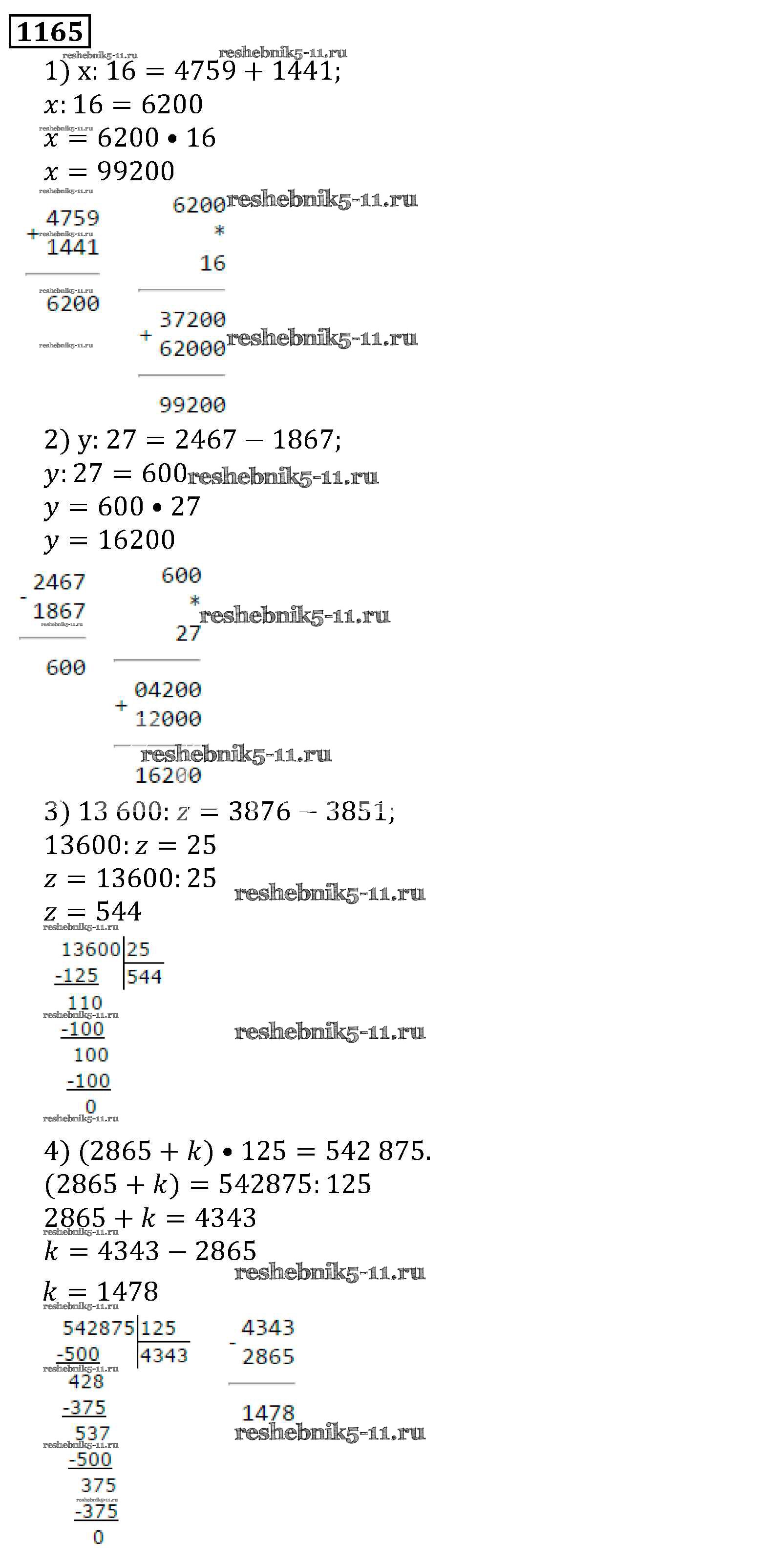 Готовая домашняя работа с ответами по Математике за 5 класс Виленкин, Жохов, Чесноков, Шварцбурд Учебник Мнемозина 2013 ФГОС - Глава 2. Дробные числа (упражнения с 850 по 1849) 1165