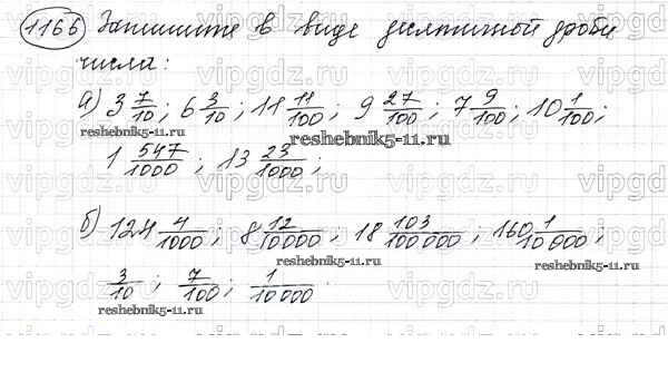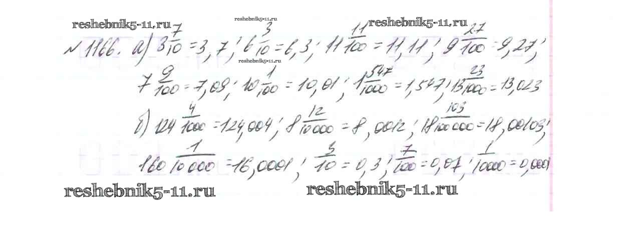 Готовая домашняя работа с ответами по Математике за 5 класс Виленкин, Жохов, Чесноков, Шварцбурд Учебник Мнемозина 2013 ФГОС - Глава 2. Дробные числа (упражнения с 850 по 1849) 1166