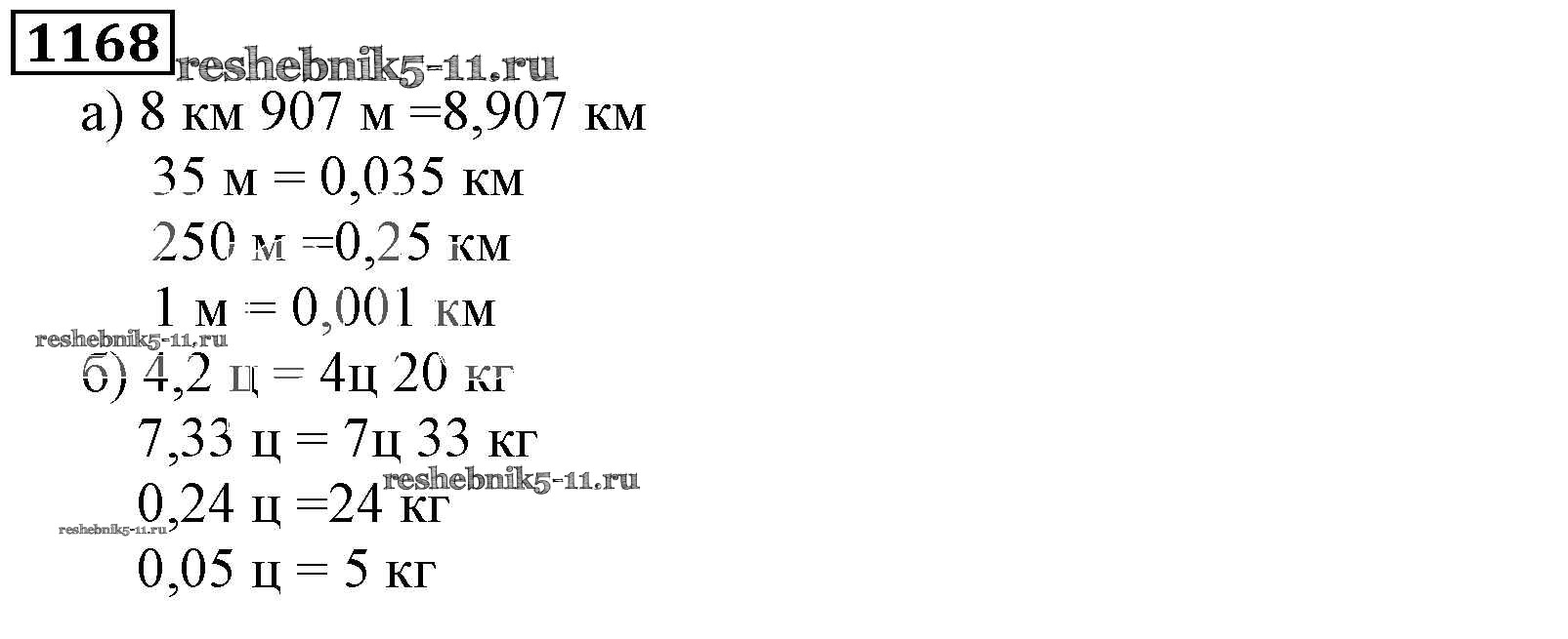 Готовая домашняя работа с ответами по Математике за 5 класс Виленкин, Жохов, Чесноков, Шварцбурд Учебник Мнемозина 2013 ФГОС - Глава 2. Дробные числа (упражнения с 850 по 1849) 1168