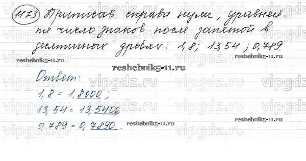Готовая домашняя работа с ответами по Математике за 5 класс Виленкин, Жохов, Чесноков, Шварцбурд Учебник Мнемозина 2013 ФГОС - Глава 2. Дробные числа (упражнения с 850 по 1849) 1173
