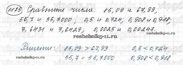 Готовая домашняя работа с ответами по Математике за 5 класс Виленкин, Жохов, Чесноков, Шварцбурд Учебник Мнемозина 2013 ФГОС - Глава 2. Дробные числа (упражнения с 850 по 1849) 1175