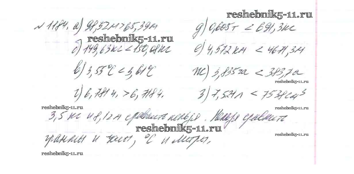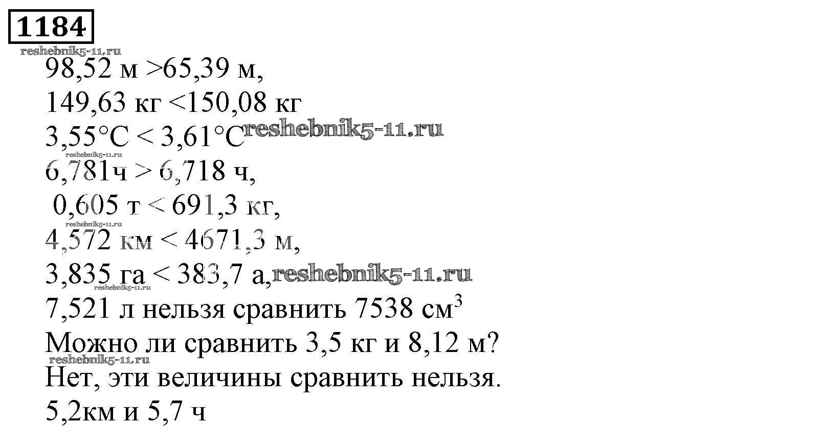 Готовая домашняя работа с ответами по Математике за 5 класс Виленкин, Жохов, Чесноков, Шварцбурд Учебник Мнемозина 2013 ФГОС - Глава 2. Дробные числа (упражнения с 850 по 1849) 1184