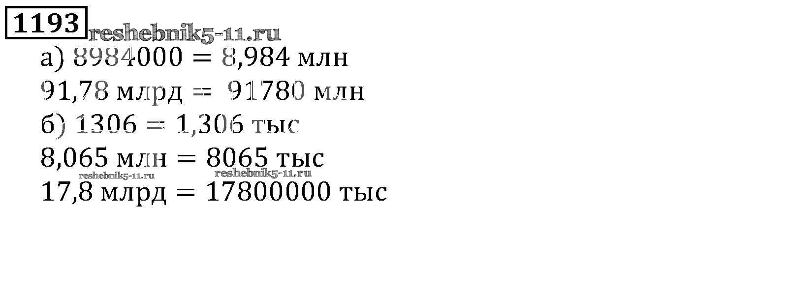 Готовая домашняя работа с ответами по Математике за 5 класс Виленкин, Жохов, Чесноков, Шварцбурд Учебник Мнемозина 2013 ФГОС - Глава 2. Дробные числа (упражнения с 850 по 1849) 1193