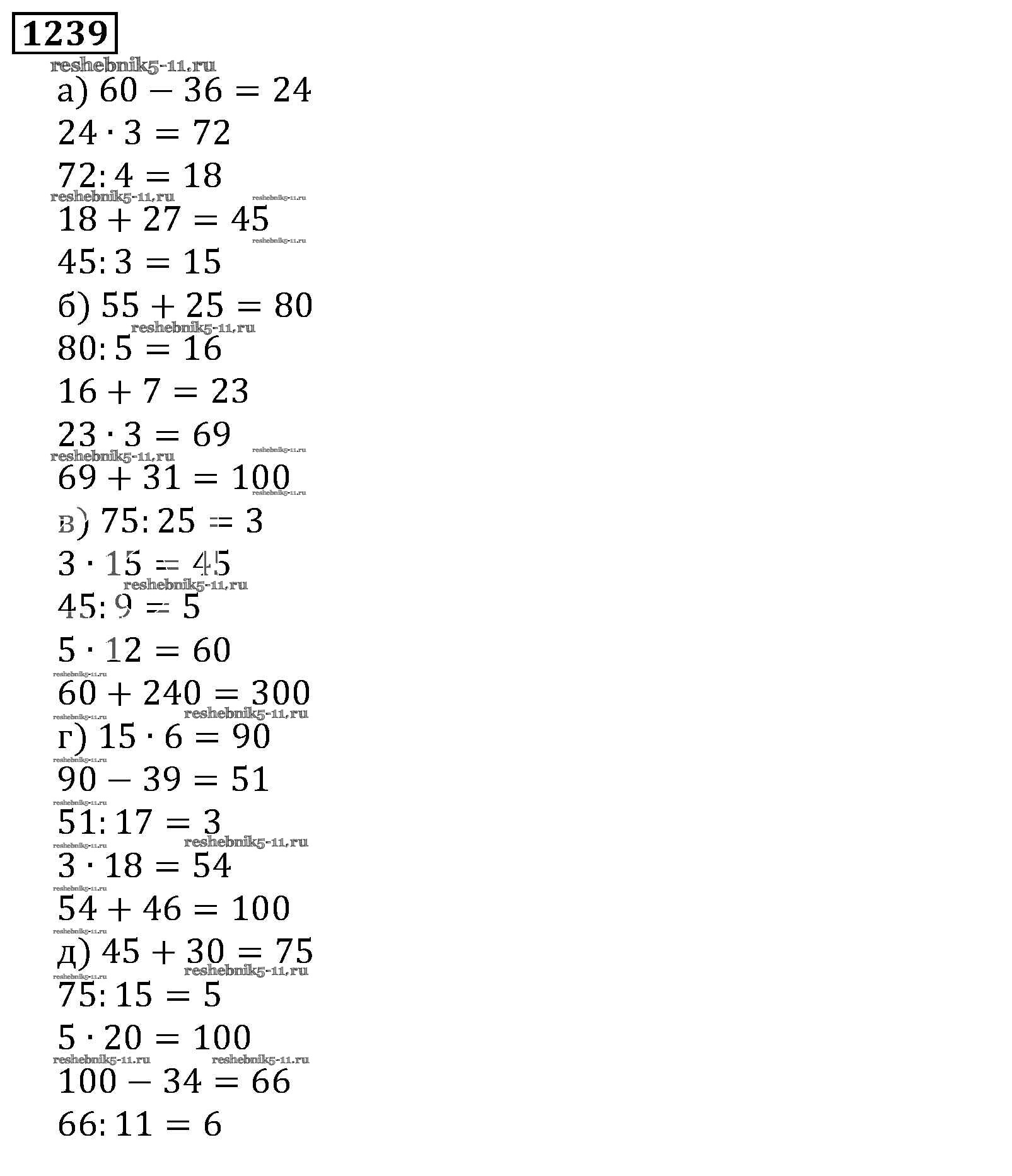 Готовая домашняя работа с ответами по Математике за 5 класс Виленкин, Жохов, Чесноков, Шварцбурд Учебник Мнемозина 2013 ФГОС - Глава 2. Дробные числа (упражнения с 850 по 1849) 1239