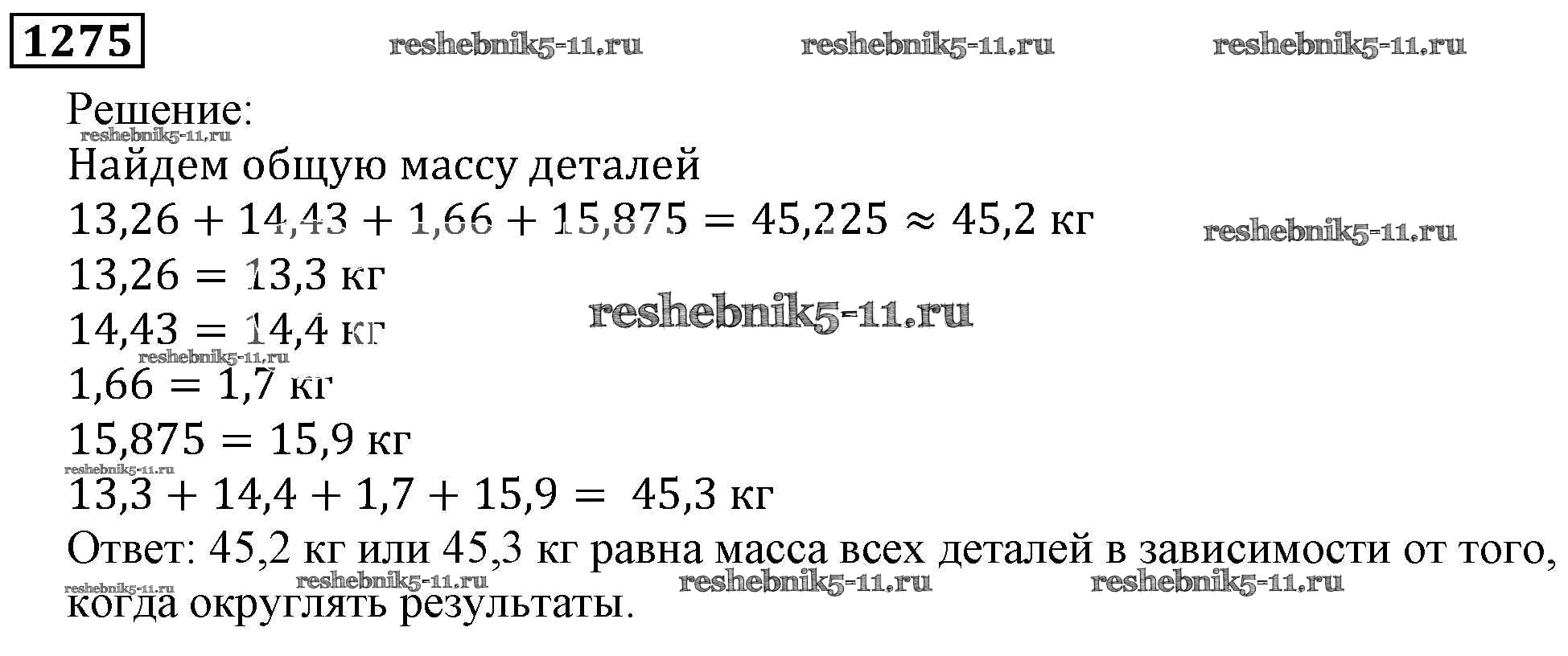 Готовая домашняя работа с ответами по Математике за 5 класс Виленкин, Жохов, Чесноков, Шварцбурд Учебник Мнемозина 2013 ФГОС - Глава 2. Дробные числа (упражнения с 850 по 1849) 1275