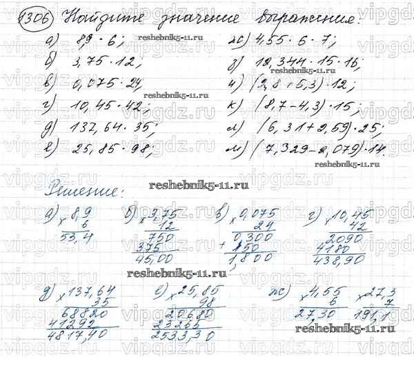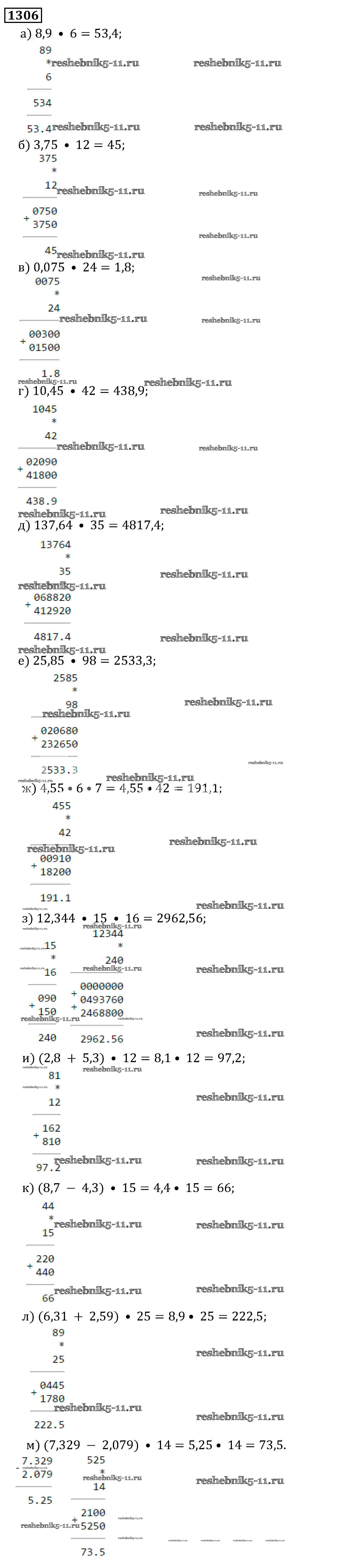Готовая домашняя работа с ответами по Математике за 5 класс Виленкин, Жохов, Чесноков, Шварцбурд Учебник Мнемозина 2013 ФГОС - Глава 2. Дробные числа (упражнения с 850 по 1849) 1306