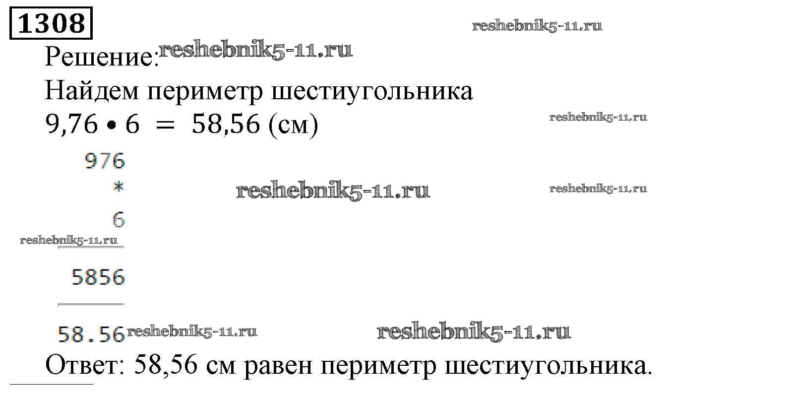 Готовая домашняя работа с ответами по Математике за 5 класс Виленкин, Жохов, Чесноков, Шварцбурд Учебник Мнемозина 2013 ФГОС - Глава 2. Дробные числа (упражнения с 850 по 1849) 1308