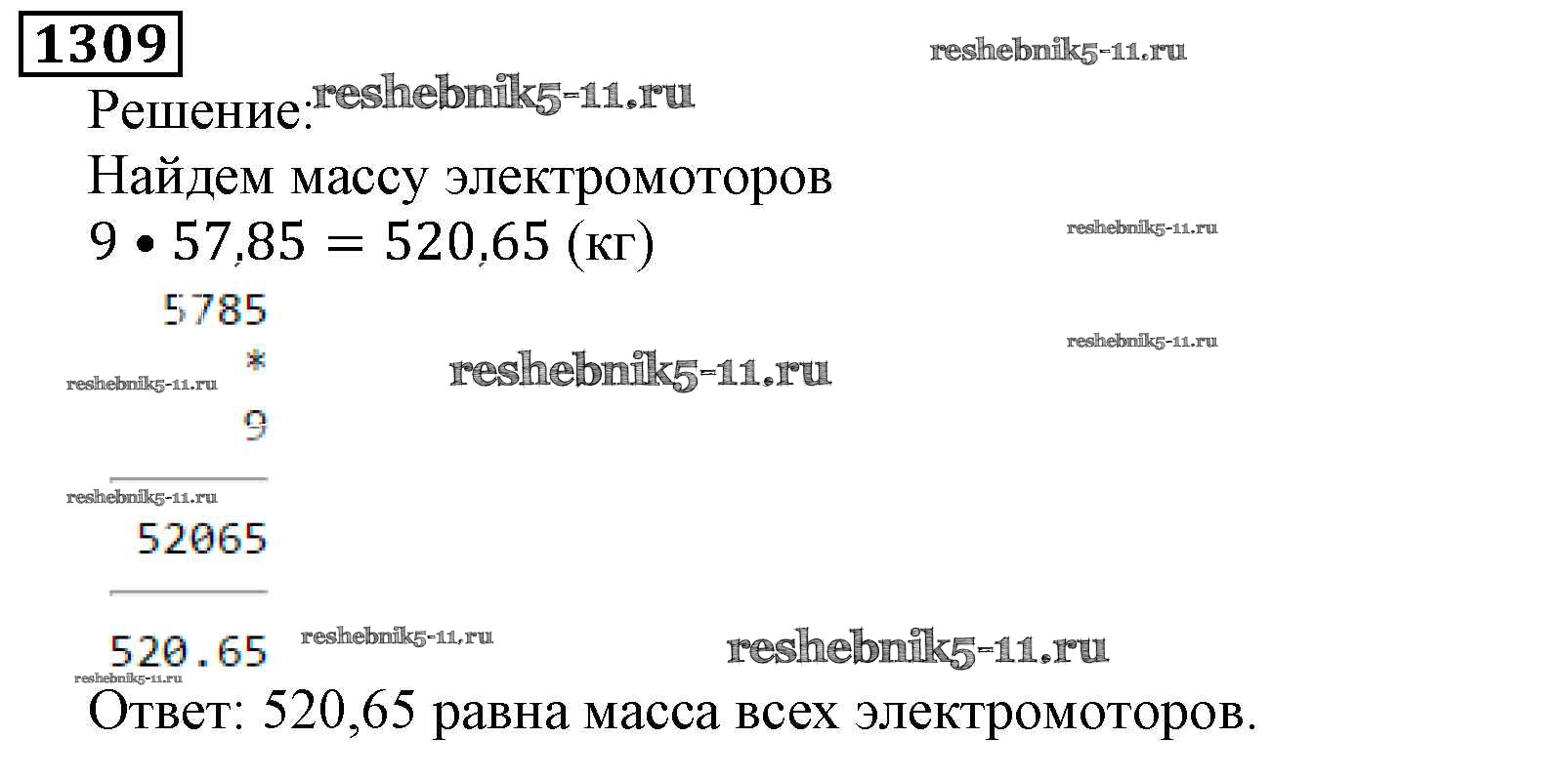 Готовая домашняя работа с ответами по Математике за 5 класс Виленкин, Жохов, Чесноков, Шварцбурд Учебник Мнемозина 2013 ФГОС - Глава 2. Дробные числа (упражнения с 850 по 1849) 1309