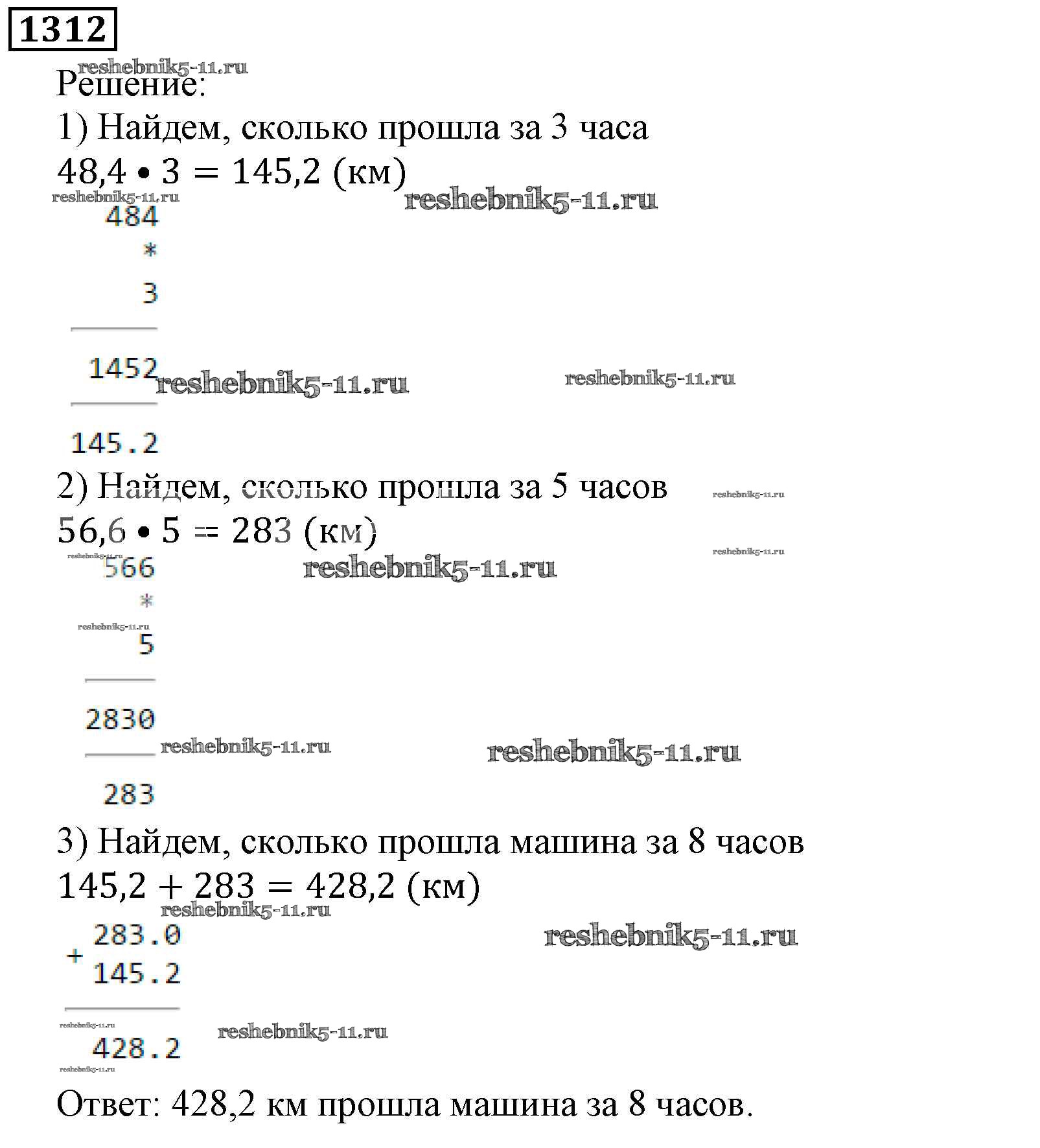 Готовая домашняя работа с ответами по Математике за 5 класс Виленкин, Жохов, Чесноков, Шварцбурд Учебник Мнемозина 2013 ФГОС - Глава 2. Дробные числа (упражнения с 850 по 1849) 1312