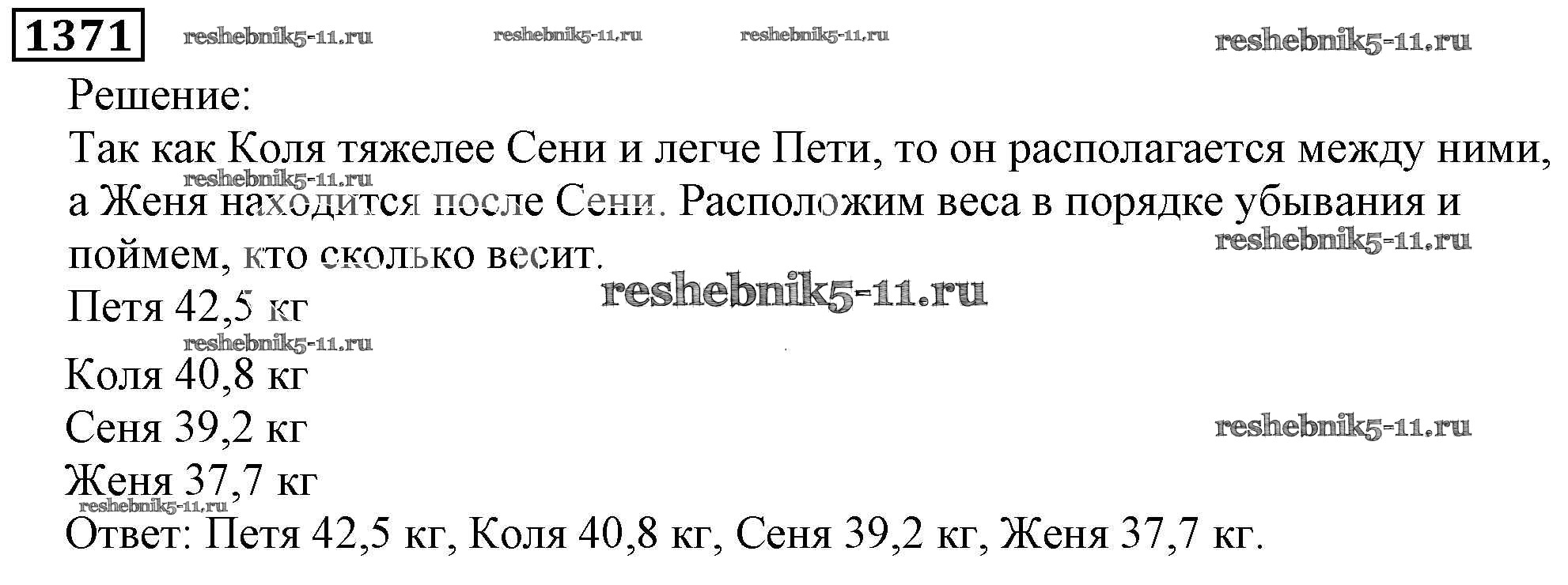 Готовая домашняя работа с ответами по Математике за 5 класс Виленкин, Жохов, Чесноков, Шварцбурд Учебник Мнемозина 2013 ФГОС - Глава 2. Дробные числа (упражнения с 850 по 1849) 1371