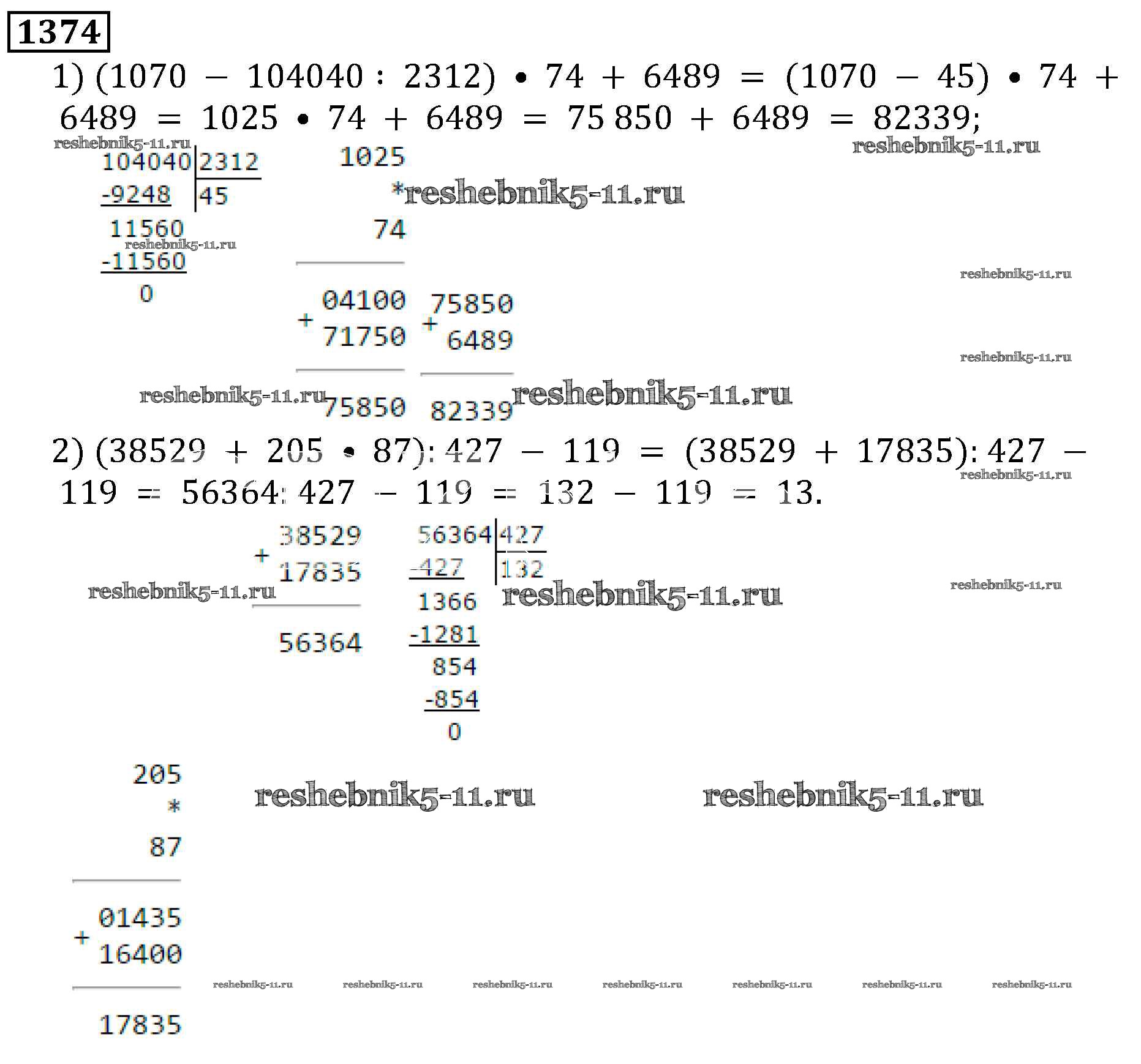 Готовая домашняя работа с ответами по Математике за 5 класс Виленкин, Жохов, Чесноков, Шварцбурд Учебник Мнемозина 2013 ФГОС - Глава 2. Дробные числа (упражнения с 850 по 1849) 1374