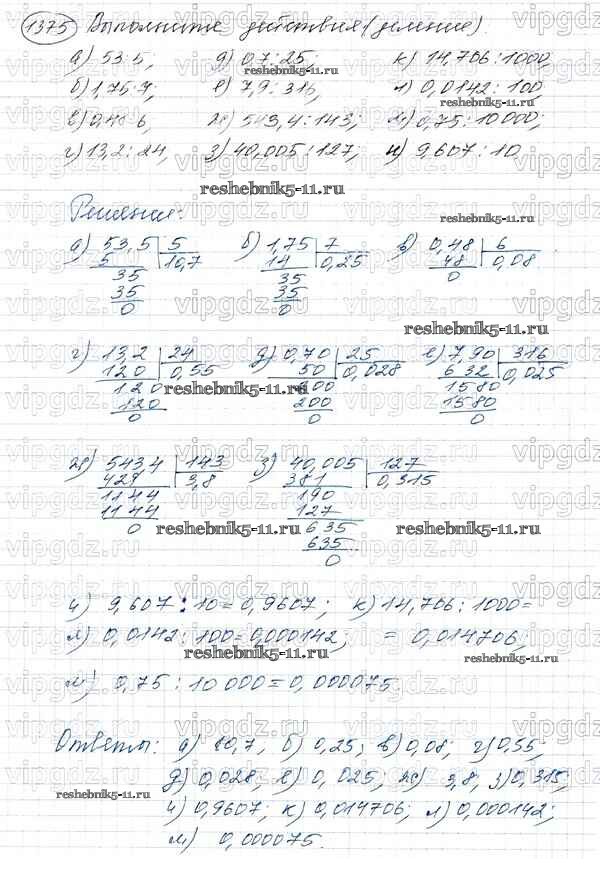 Готовая домашняя работа с ответами по Математике за 5 класс Виленкин, Жохов, Чесноков, Шварцбурд Учебник Мнемозина 2013 ФГОС - Глава 2. Дробные числа (упражнения с 850 по 1849) 1375