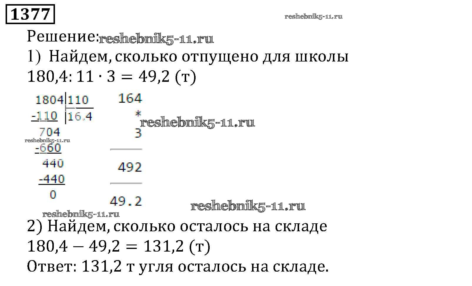 Готовая домашняя работа с ответами по Математике за 5 класс Виленкин, Жохов, Чесноков, Шварцбурд Учебник Мнемозина 2013 ФГОС - Глава 2. Дробные числа (упражнения с 850 по 1849) 1377