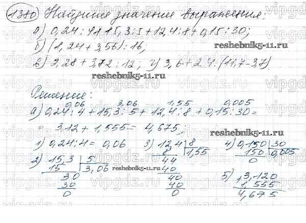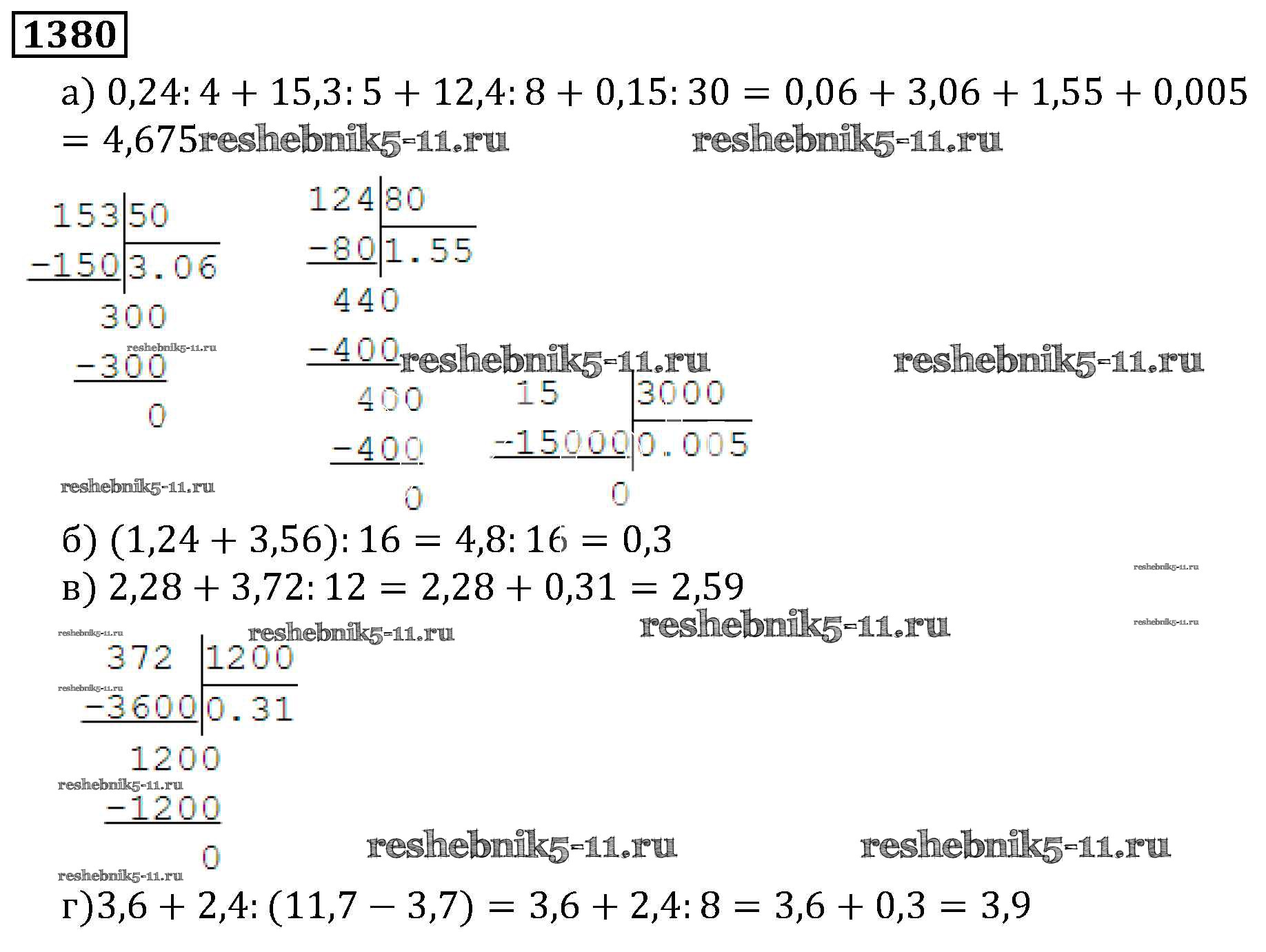Готовая домашняя работа с ответами по Математике за 5 класс Виленкин, Жохов, Чесноков, Шварцбурд Учебник Мнемозина 2013 ФГОС - Глава 2. Дробные числа (упражнения с 850 по 1849) 1380