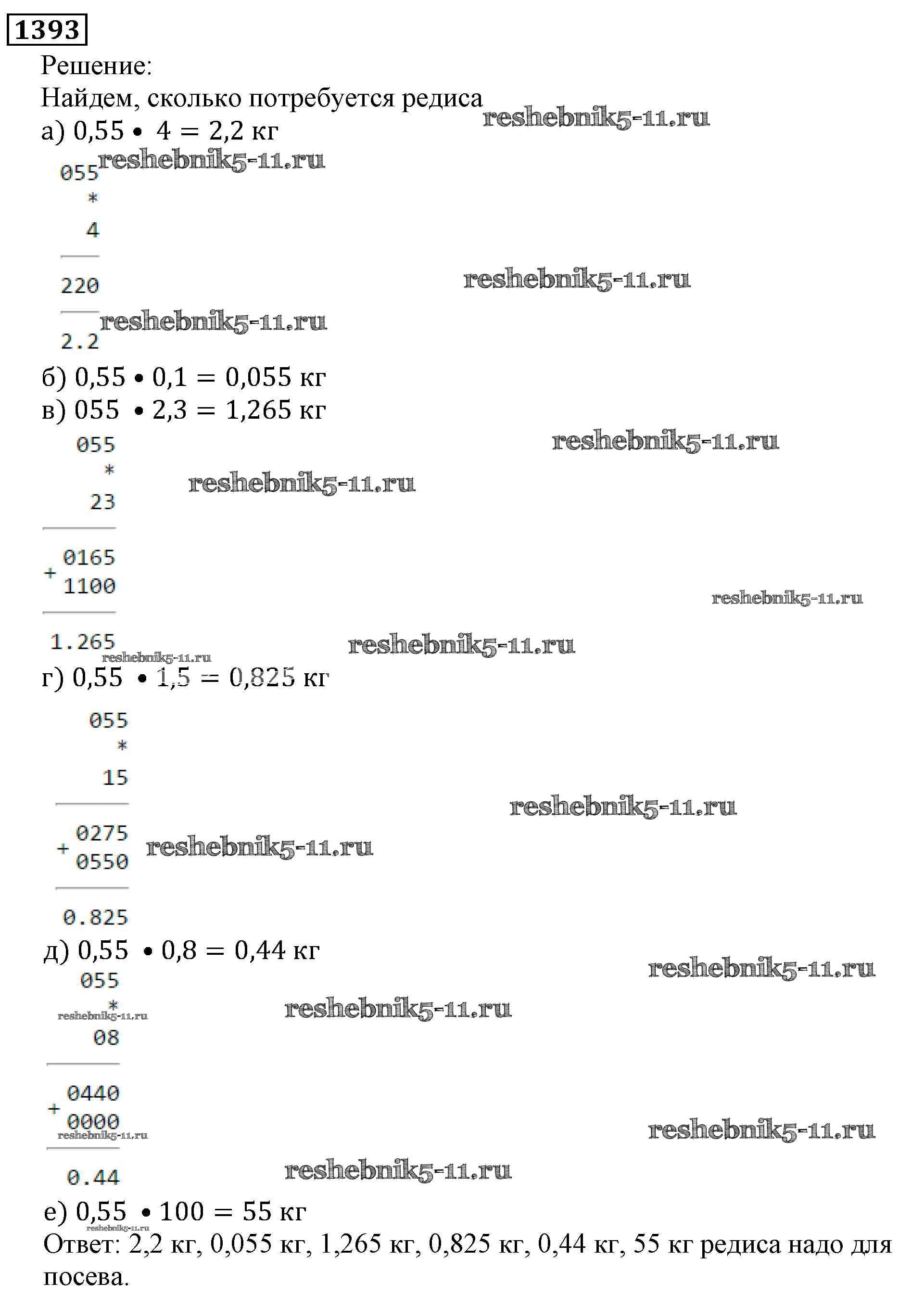 Готовая домашняя работа с ответами по Математике за 5 класс Виленкин, Жохов, Чесноков, Шварцбурд Учебник Мнемозина 2013 ФГОС - Глава 2. Дробные числа (упражнения с 850 по 1849) 1393