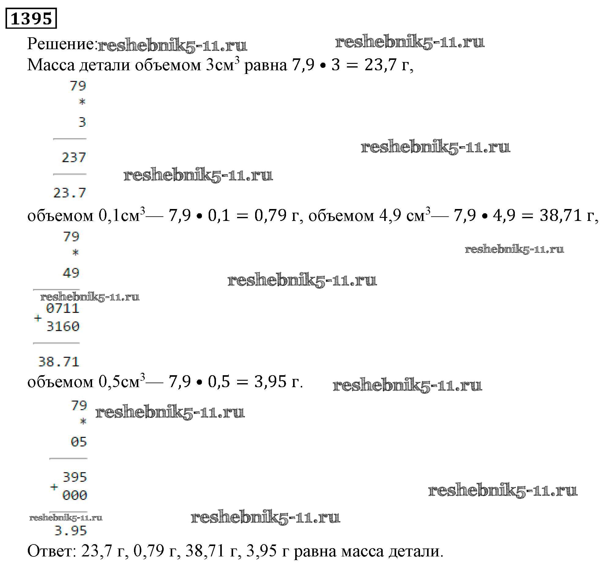 Готовая домашняя работа с ответами по Математике за 5 класс Виленкин, Жохов, Чесноков, Шварцбурд Учебник Мнемозина 2013 ФГОС - Глава 2. Дробные числа (упражнения с 850 по 1849) 1395
