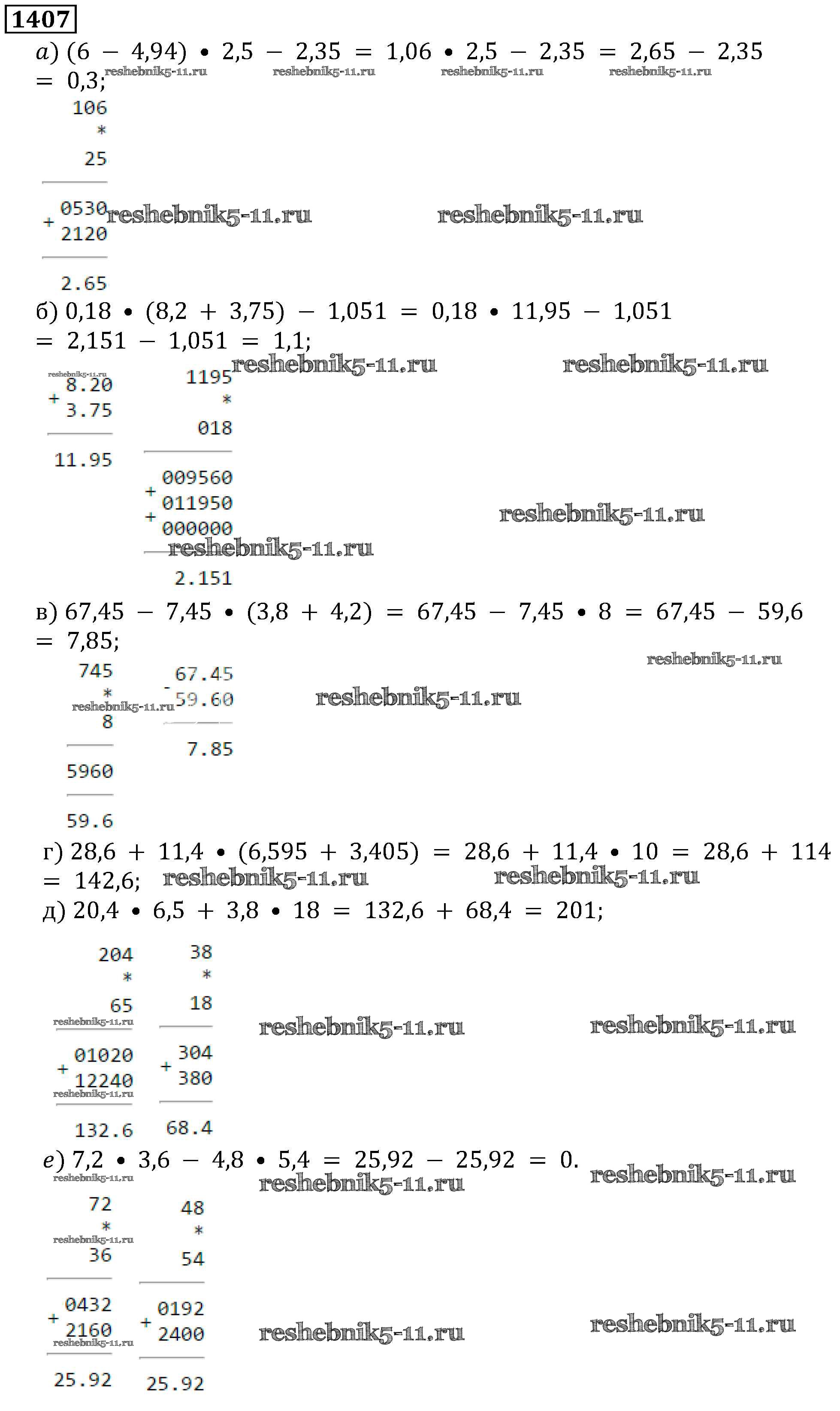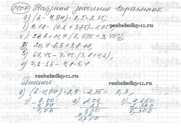 Готовая домашняя работа с ответами по Математике за 5 класс Виленкин, Жохов, Чесноков, Шварцбурд Учебник Мнемозина 2013 ФГОС - Глава 2. Дробные числа (упражнения с 850 по 1849) 1407