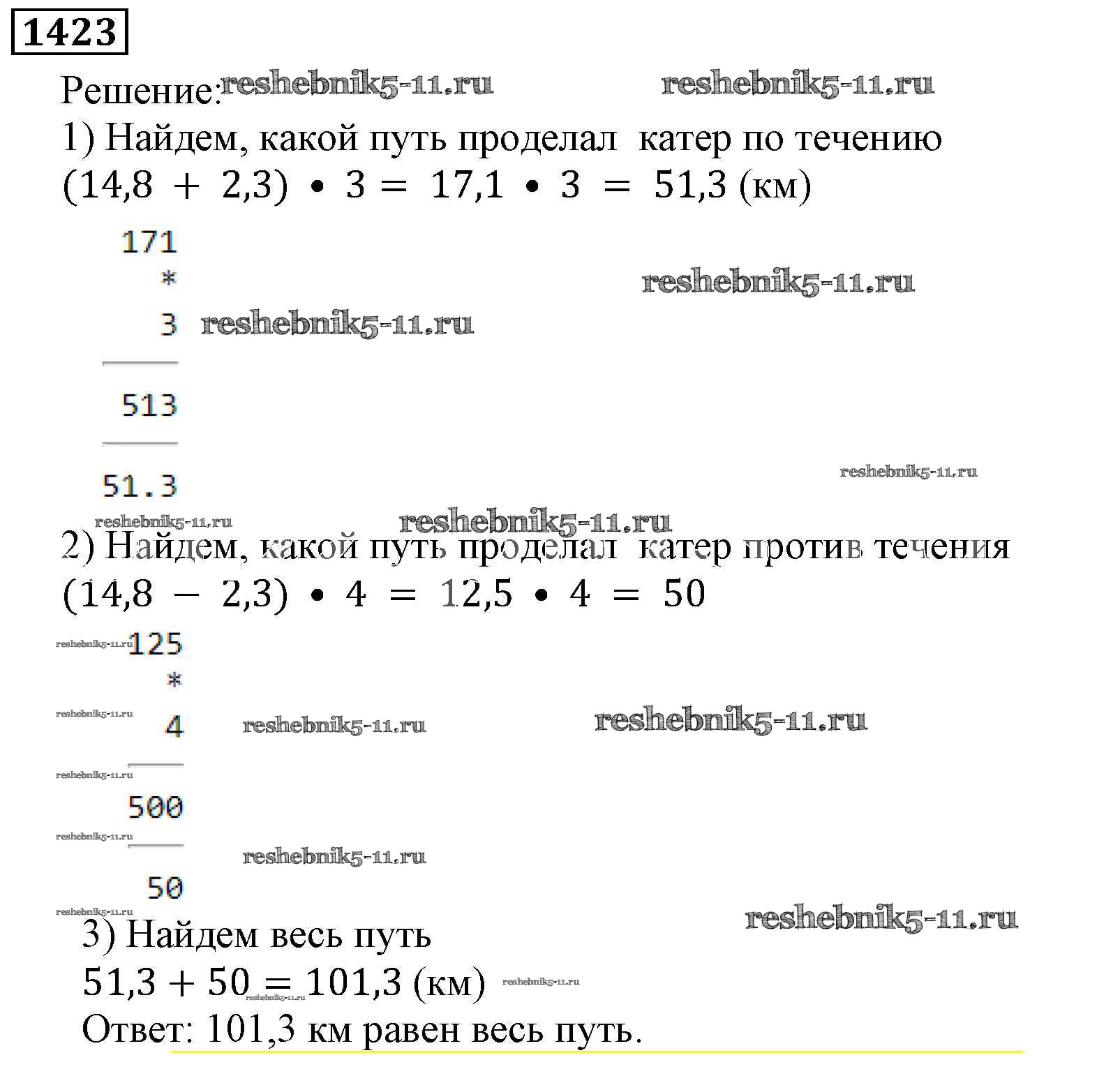 Готовая домашняя работа с ответами по Математике за 5 класс Виленкин, Жохов, Чесноков, Шварцбурд Учебник Мнемозина 2013 ФГОС - Глава 2. Дробные числа (упражнения с 850 по 1849) 1423