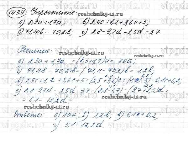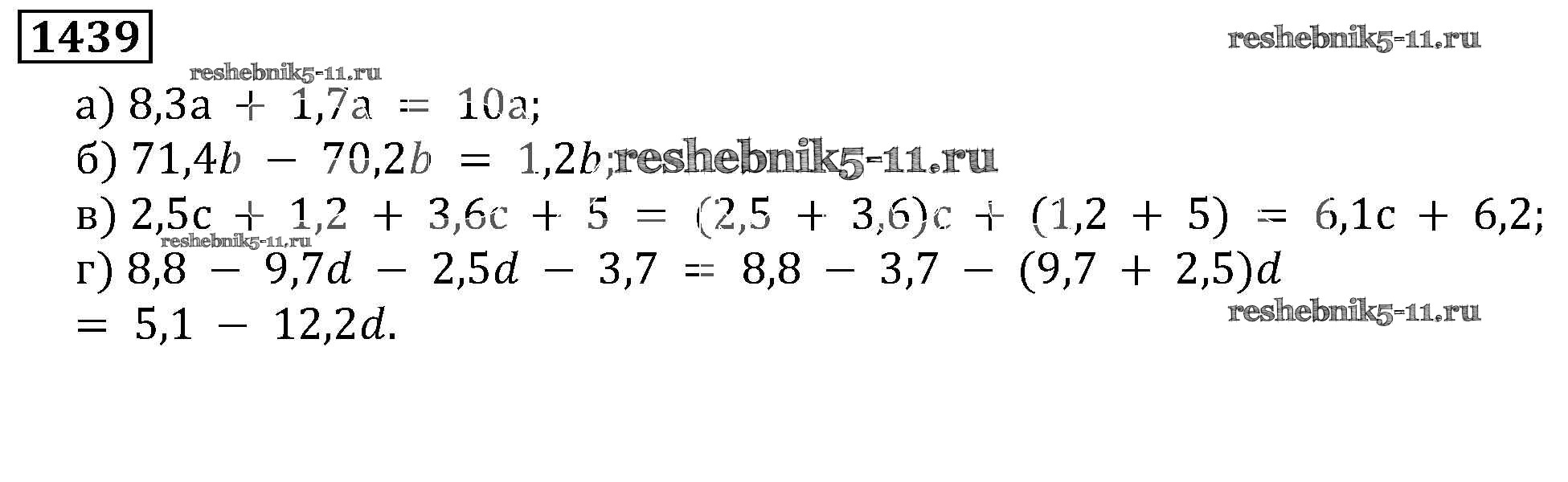 Готовая домашняя работа с ответами по Математике за 5 класс Виленкин, Жохов, Чесноков, Шварцбурд Учебник Мнемозина 2013 ФГОС - Глава 2. Дробные числа (упражнения с 850 по 1849) 1439