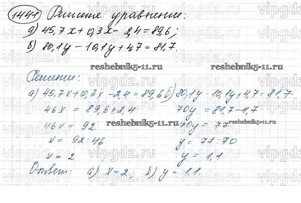 Готовая домашняя работа с ответами по Математике за 5 класс Виленкин, Жохов, Чесноков, Шварцбурд Учебник Мнемозина 2013 ФГОС - Глава 2. Дробные числа (упражнения с 850 по 1849) 1441