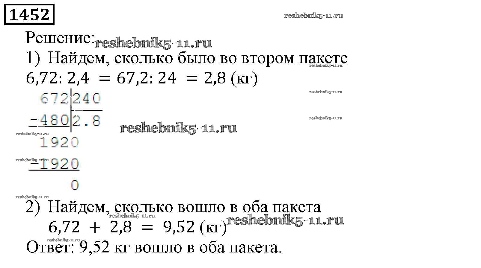 Готовая домашняя работа с ответами по Математике за 5 класс Виленкин, Жохов, Чесноков, Шварцбурд Учебник Мнемозина 2013 ФГОС - Глава 2. Дробные числа (упражнения с 850 по 1849) 1452