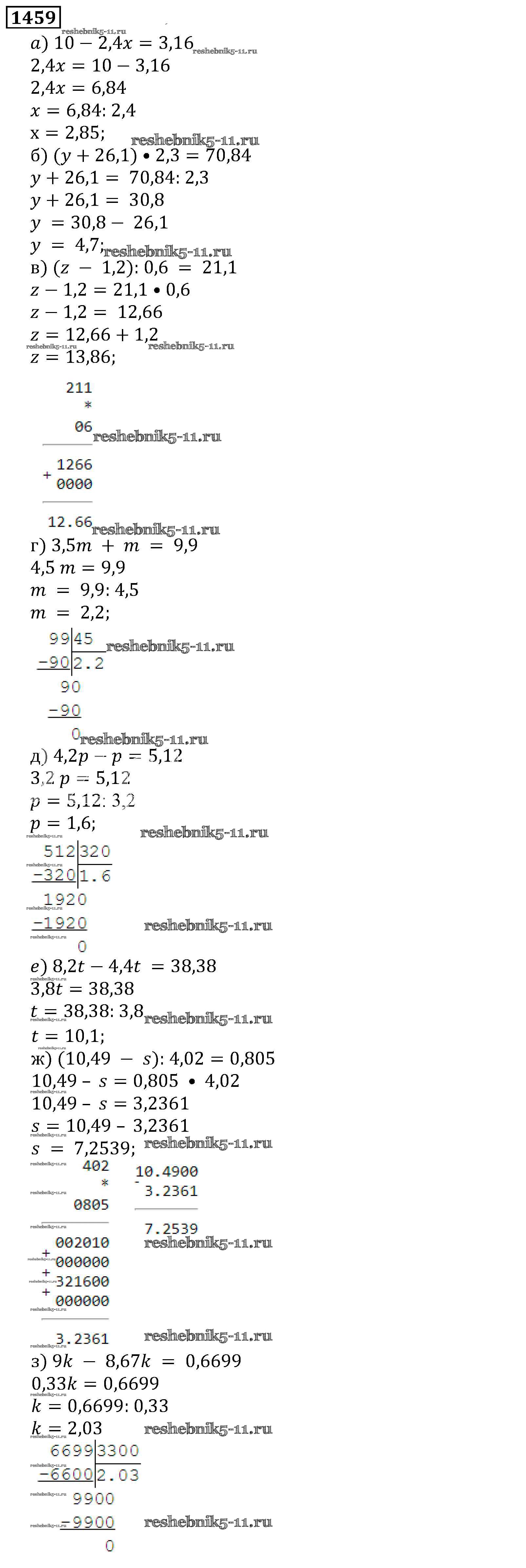 Готовая домашняя работа с ответами по Математике за 5 класс Виленкин, Жохов, Чесноков, Шварцбурд Учебник Мнемозина 2013 ФГОС - Глава 2. Дробные числа (упражнения с 850 по 1849) 1459