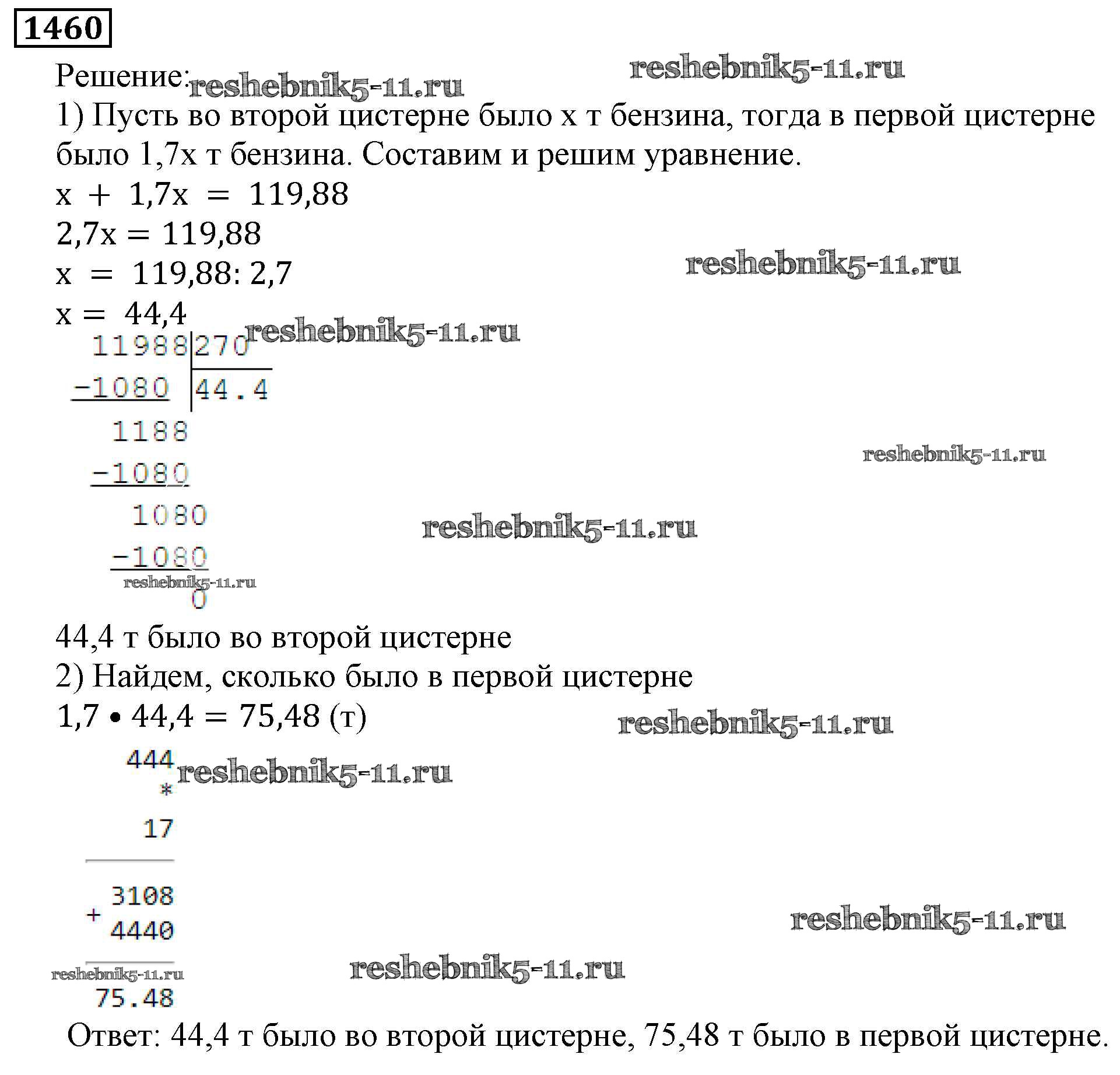 Готовая домашняя работа с ответами по Математике за 5 класс Виленкин, Жохов, Чесноков, Шварцбурд Учебник Мнемозина 2013 ФГОС - Глава 2. Дробные числа (упражнения с 850 по 1849) 1460