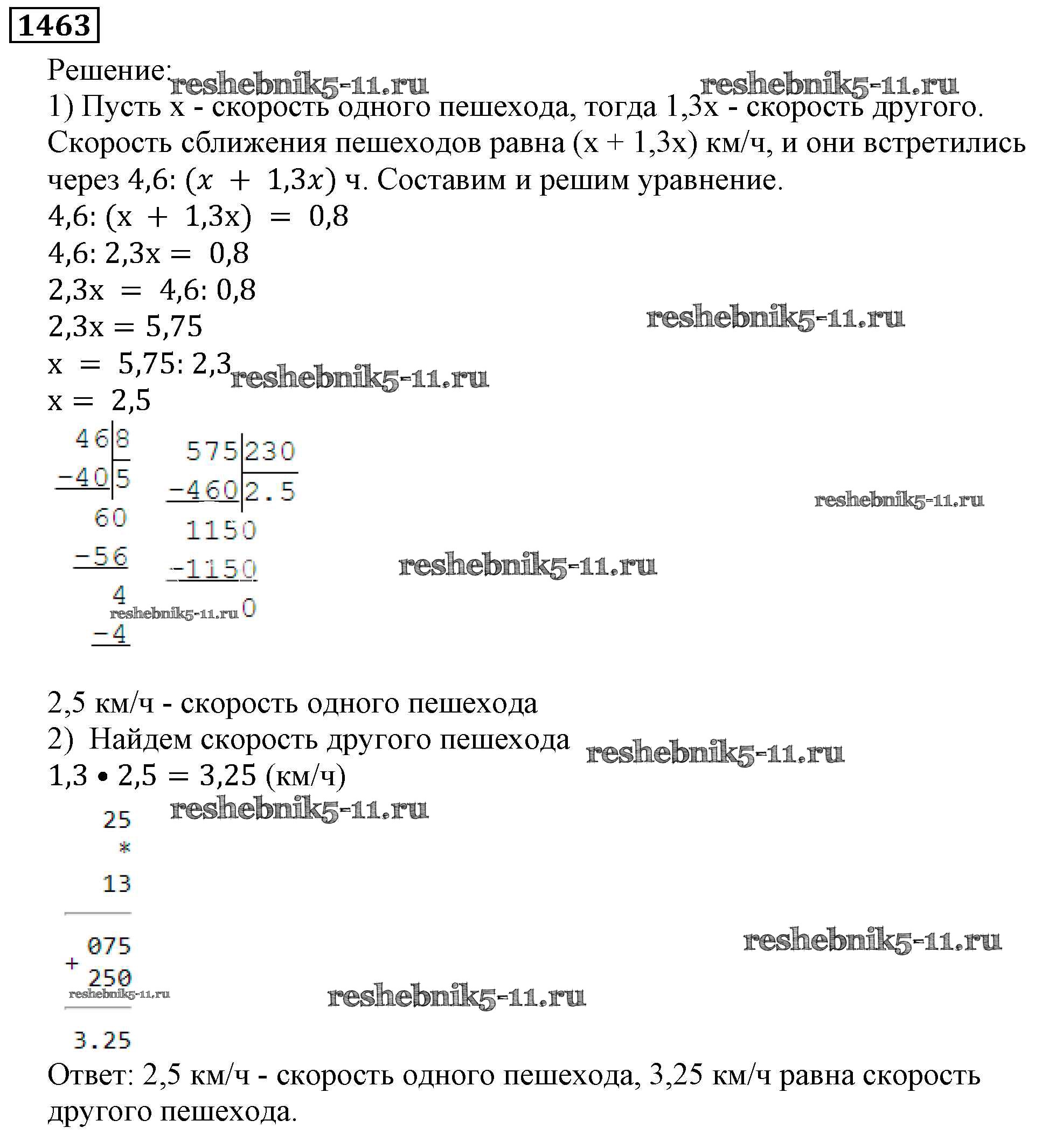 Готовая домашняя работа с ответами по Математике за 5 класс Виленкин, Жохов, Чесноков, Шварцбурд Учебник Мнемозина 2013 ФГОС - Глава 2. Дробные числа (упражнения с 850 по 1849) 1463