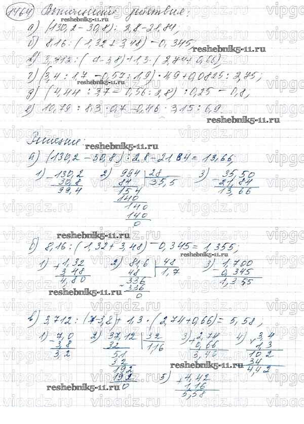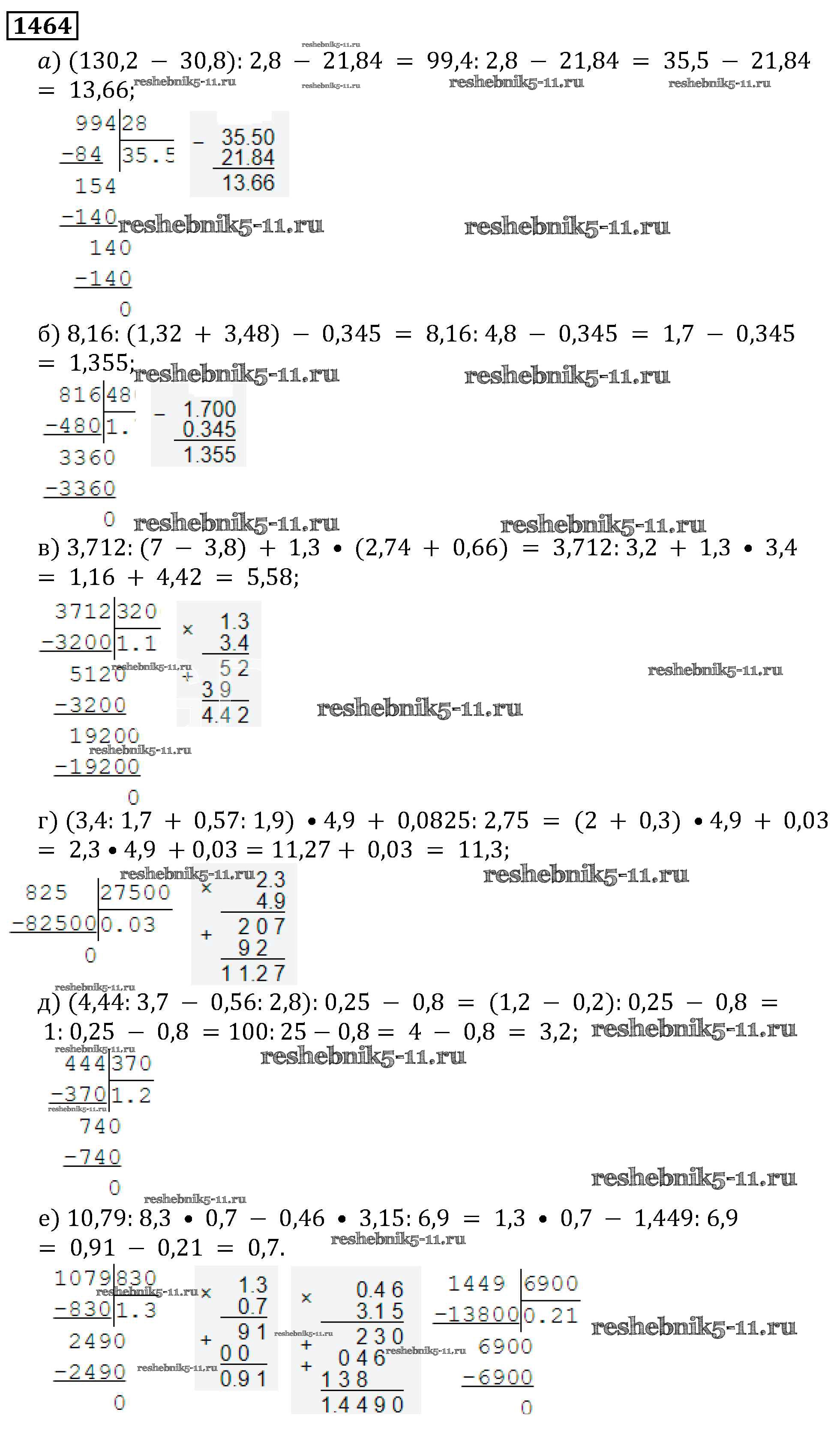 Готовая домашняя работа с ответами по Математике за 5 класс Виленкин, Жохов, Чесноков, Шварцбурд Учебник Мнемозина 2013 ФГОС - Глава 2. Дробные числа (упражнения с 850 по 1849) 1464