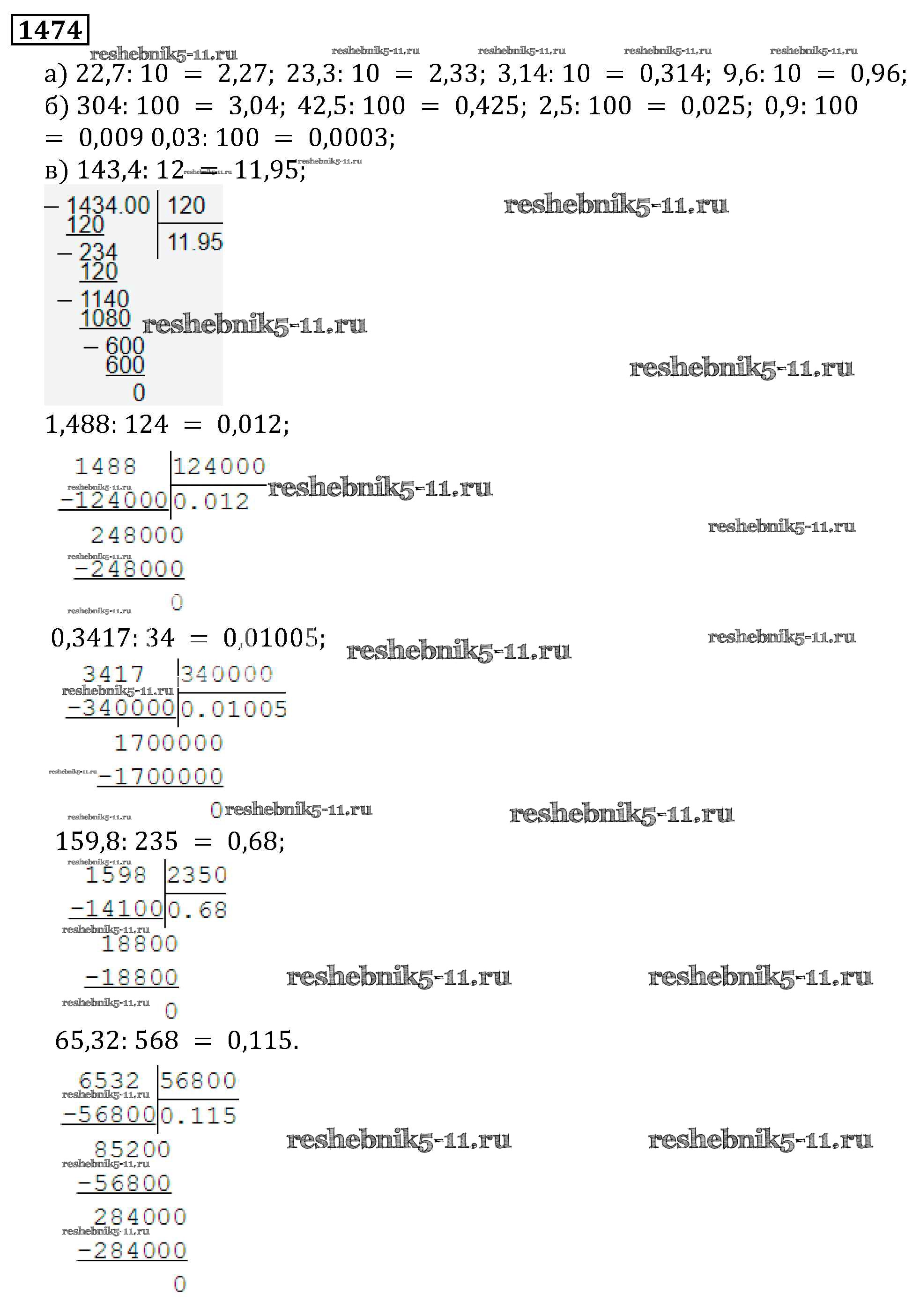Готовая домашняя работа с ответами по Математике за 5 класс Виленкин, Жохов, Чесноков, Шварцбурд Учебник Мнемозина 2013 ФГОС - Глава 2. Дробные числа (упражнения с 850 по 1849) 1474