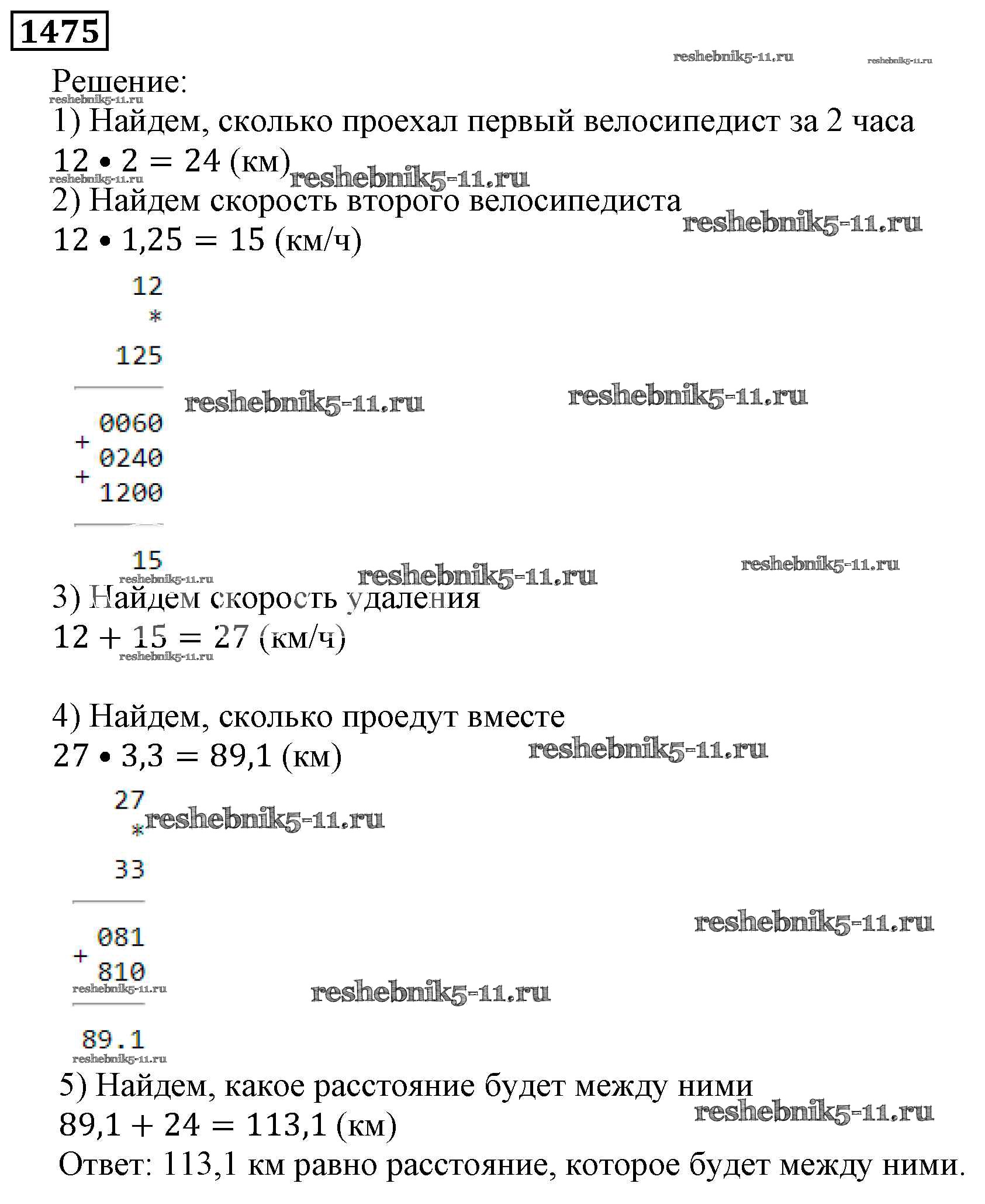 Готовая домашняя работа с ответами по Математике за 5 класс Виленкин, Жохов, Чесноков, Шварцбурд Учебник Мнемозина 2013 ФГОС - Глава 2. Дробные числа (упражнения с 850 по 1849) 1475