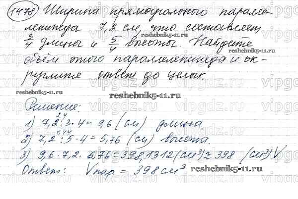 Готовая домашняя работа с ответами по Математике за 5 класс Виленкин, Жохов, Чесноков, Шварцбурд Учебник Мнемозина 2013 ФГОС - Глава 2. Дробные числа (упражнения с 850 по 1849) 1478