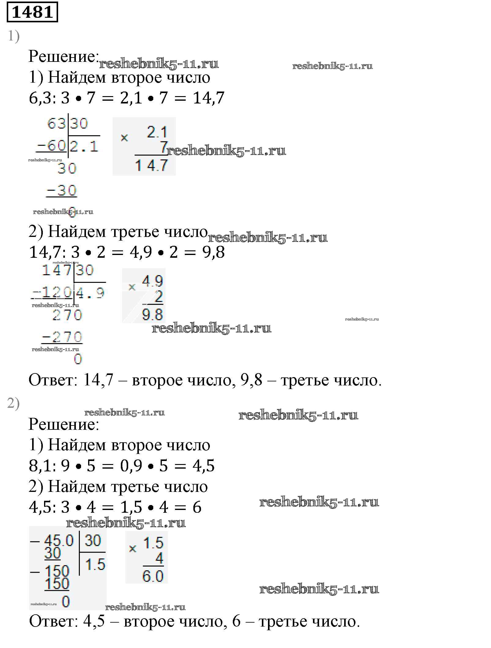 Готовая домашняя работа с ответами по Математике за 5 класс Виленкин, Жохов, Чесноков, Шварцбурд Учебник Мнемозина 2013 ФГОС - Глава 2. Дробные числа (упражнения с 850 по 1849) 1481