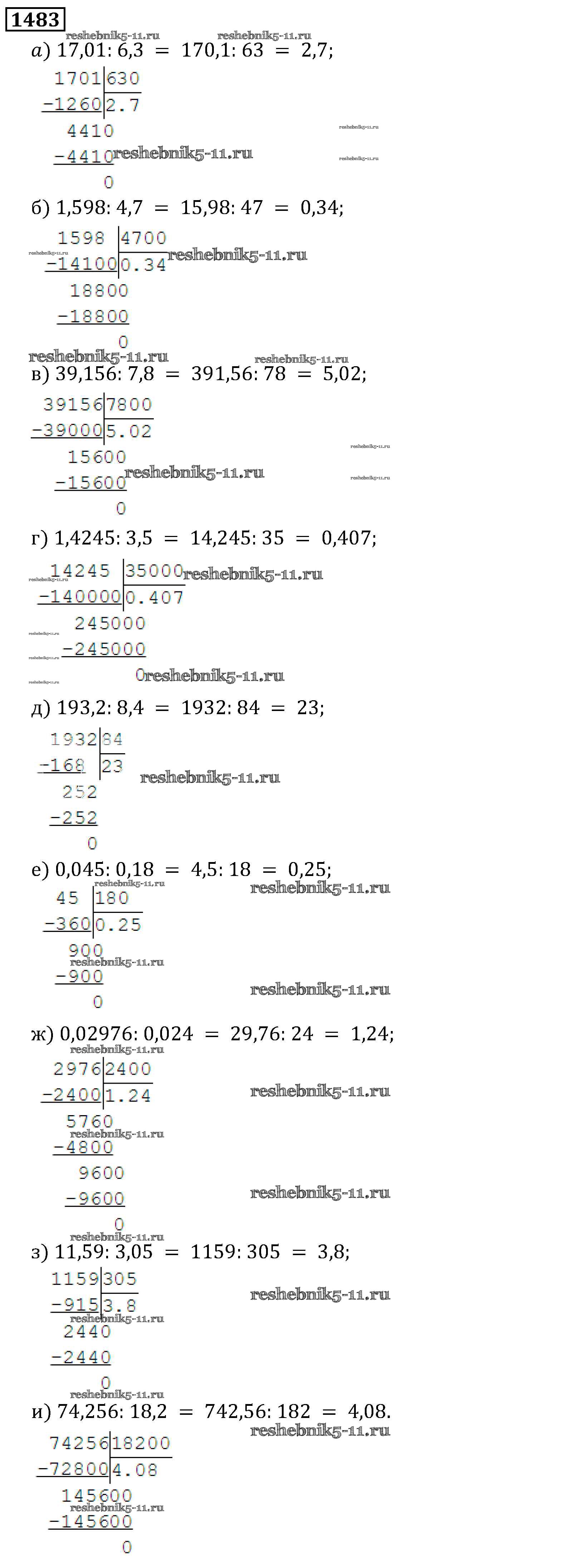Готовая домашняя работа с ответами по Математике за 5 класс Виленкин, Жохов, Чесноков, Шварцбурд Учебник Мнемозина 2013 ФГОС - Глава 2. Дробные числа (упражнения с 850 по 1849) 1483