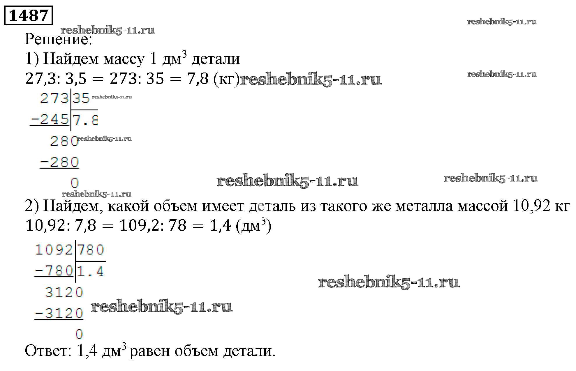 Готовая домашняя работа с ответами по Математике за 5 класс Виленкин, Жохов, Чесноков, Шварцбурд Учебник Мнемозина 2013 ФГОС - Глава 2. Дробные числа (упражнения с 850 по 1849) 1487