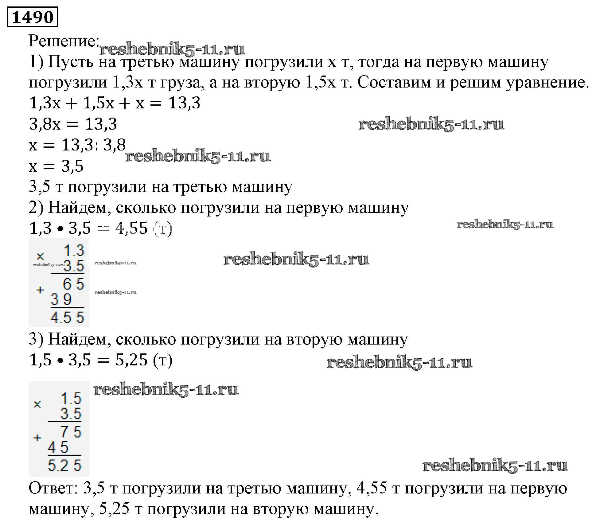 Готовая домашняя работа с ответами по Математике за 5 класс Виленкин, Жохов, Чесноков, Шварцбурд Учебник Мнемозина 2013 ФГОС - Глава 2. Дробные числа (упражнения с 850 по 1849) 1490