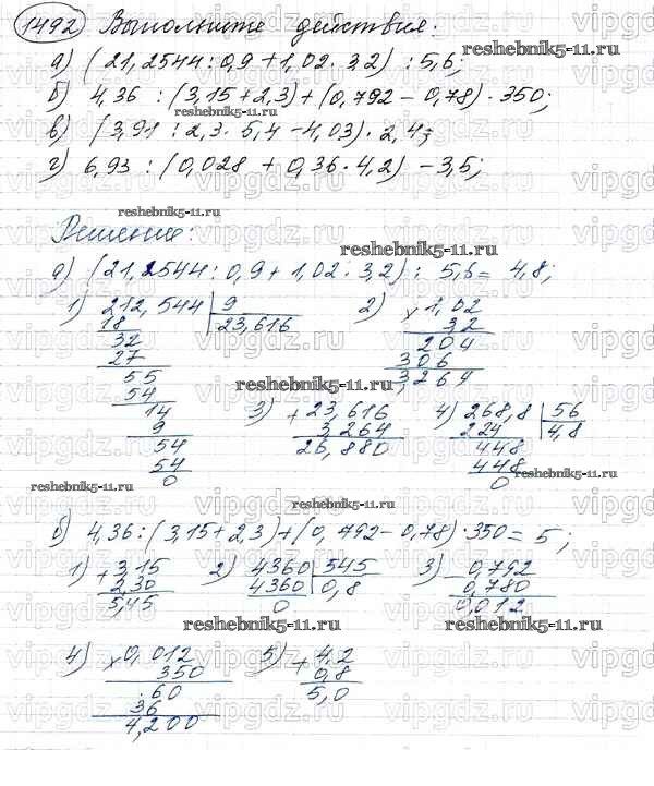 Готовая домашняя работа с ответами по Математике за 5 класс Виленкин, Жохов, Чесноков, Шварцбурд Учебник Мнемозина 2013 ФГОС - Глава 2. Дробные числа (упражнения с 850 по 1849) 1492