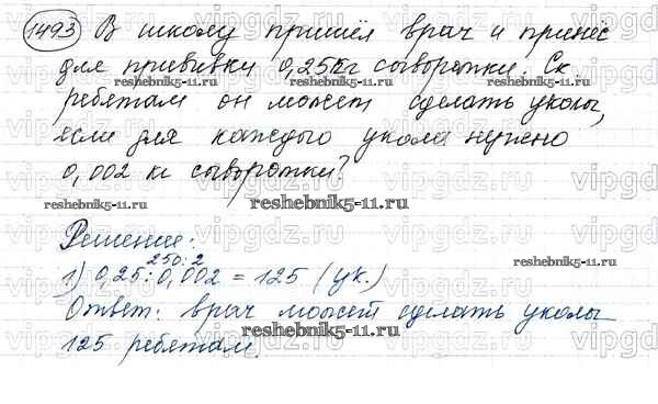Готовая домашняя работа с ответами по Математике за 5 класс Виленкин, Жохов, Чесноков, Шварцбурд Учебник Мнемозина 2013 ФГОС - Глава 2. Дробные числа (упражнения с 850 по 1849) 1493