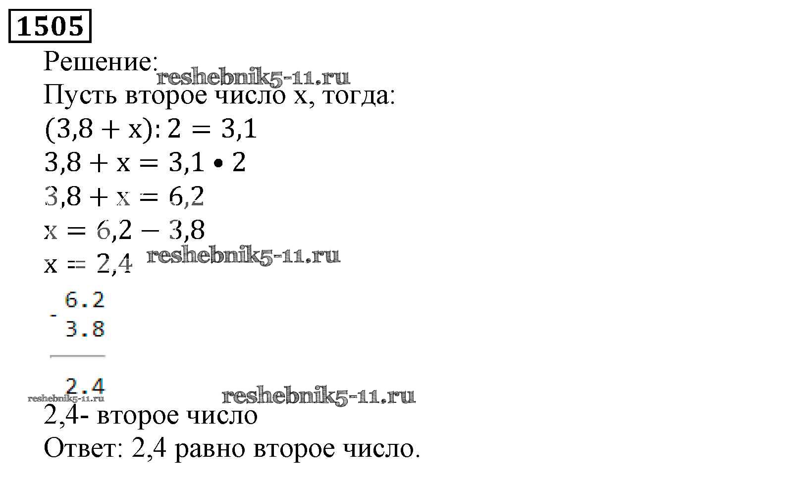 Готовая домашняя работа с ответами по Математике за 5 класс Виленкин, Жохов, Чесноков, Шварцбурд Учебник Мнемозина 2013 ФГОС - Глава 2. Дробные числа (упражнения с 850 по 1849) 1505