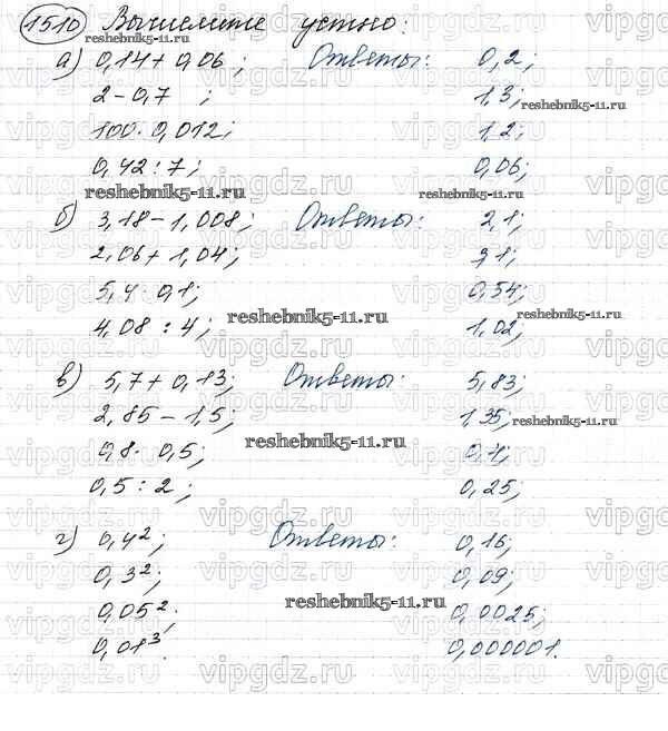 Готовая домашняя работа с ответами по Математике за 5 класс Виленкин, Жохов, Чесноков, Шварцбурд Учебник Мнемозина 2013 ФГОС - Глава 2. Дробные числа (упражнения с 850 по 1849) 1510