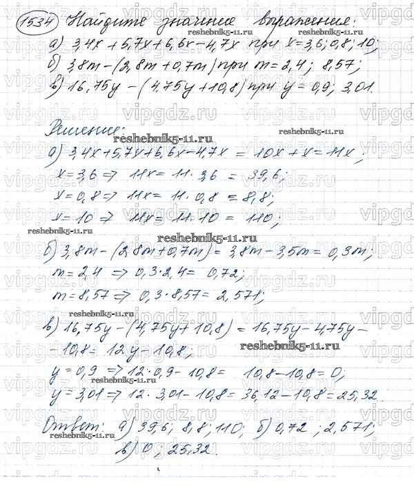 Готовая домашняя работа с ответами по Математике за 5 класс Виленкин, Жохов, Чесноков, Шварцбурд Учебник Мнемозина 2013 ФГОС - Глава 2. Дробные числа (упражнения с 850 по 1849) 1534