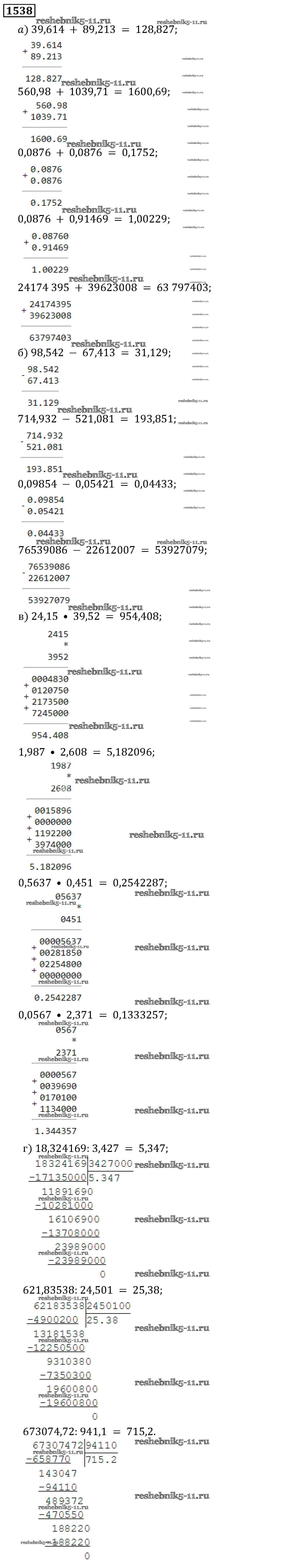 Готовая домашняя работа с ответами по Математике за 5 класс Виленкин, Жохов, Чесноков, Шварцбурд Учебник Мнемозина 2013 ФГОС - Глава 2. Дробные числа (упражнения с 850 по 1849) 1538