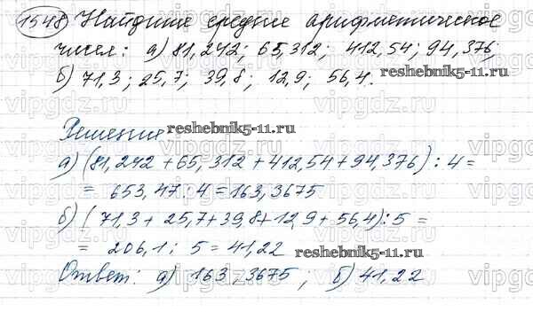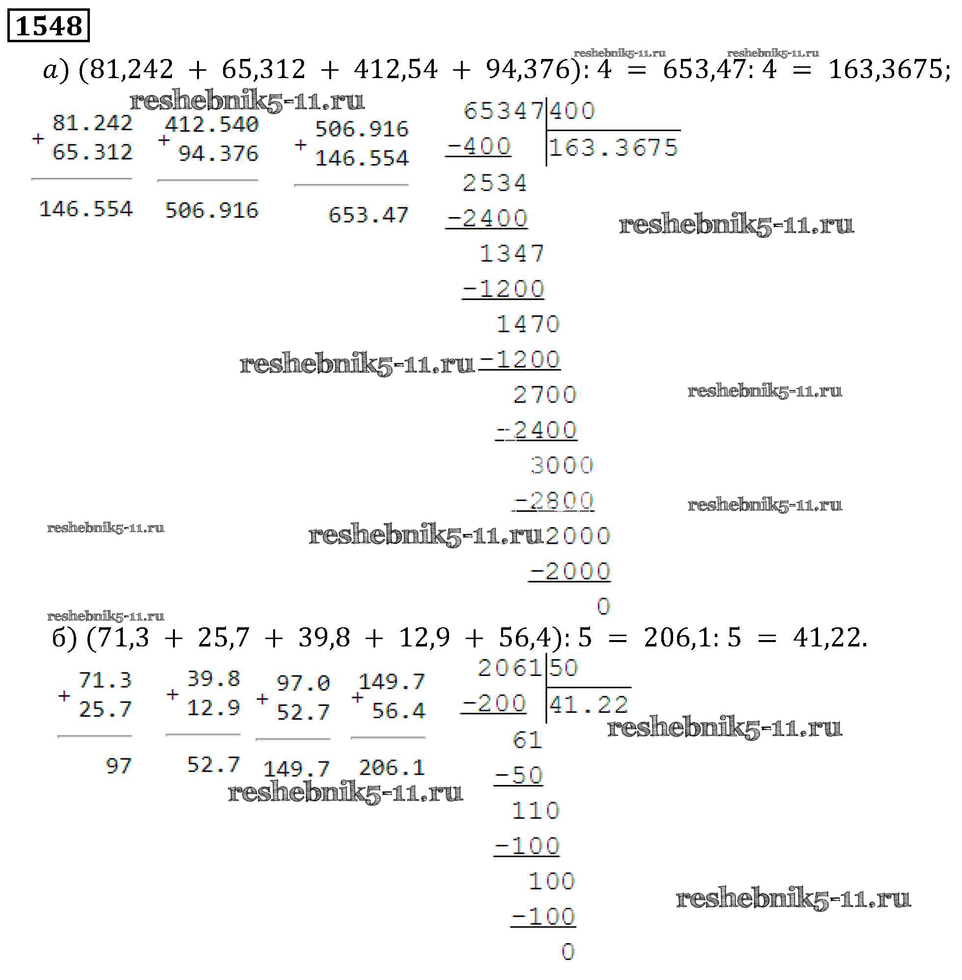 Готовая домашняя работа с ответами по Математике за 5 класс Виленкин, Жохов, Чесноков, Шварцбурд Учебник Мнемозина 2013 ФГОС - Глава 2. Дробные числа (упражнения с 850 по 1849) 1548