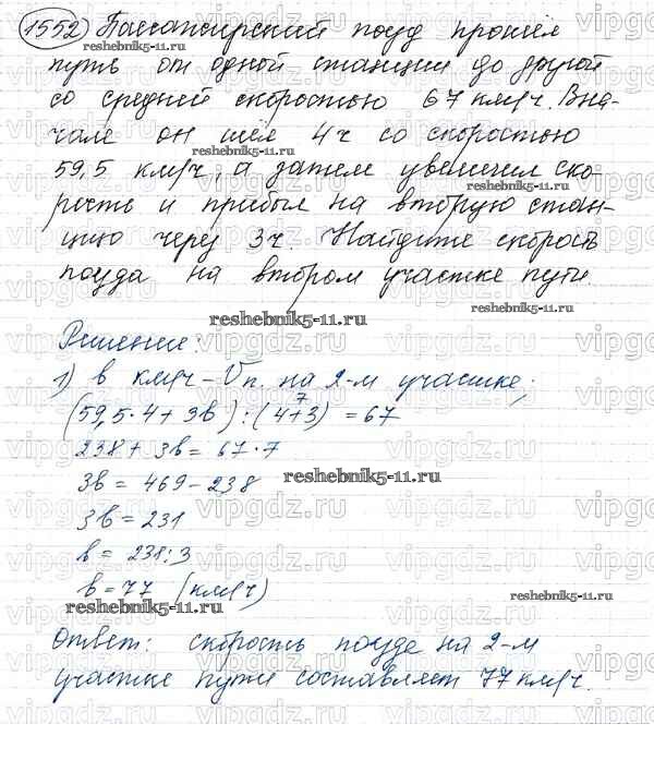Готовая домашняя работа с ответами по Математике за 5 класс Виленкин, Жохов, Чесноков, Шварцбурд Учебник Мнемозина 2013 ФГОС - Глава 2. Дробные числа (упражнения с 850 по 1849) 1552