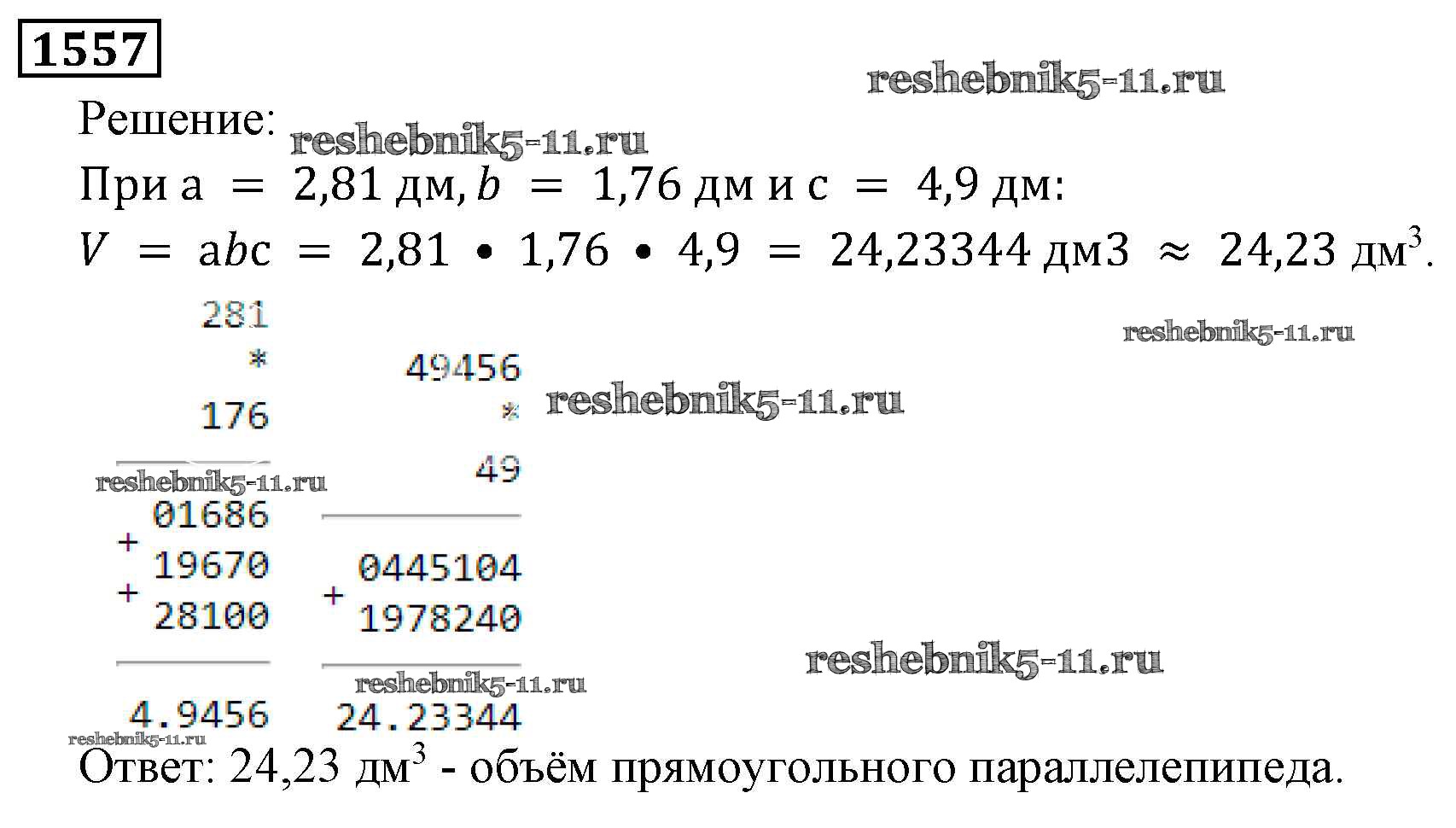 Готовая домашняя работа с ответами по Математике за 5 класс Виленкин, Жохов, Чесноков, Шварцбурд Учебник Мнемозина 2013 ФГОС - Глава 2. Дробные числа (упражнения с 850 по 1849) 1557